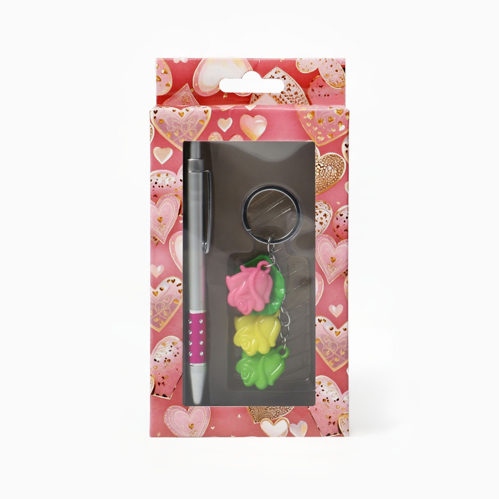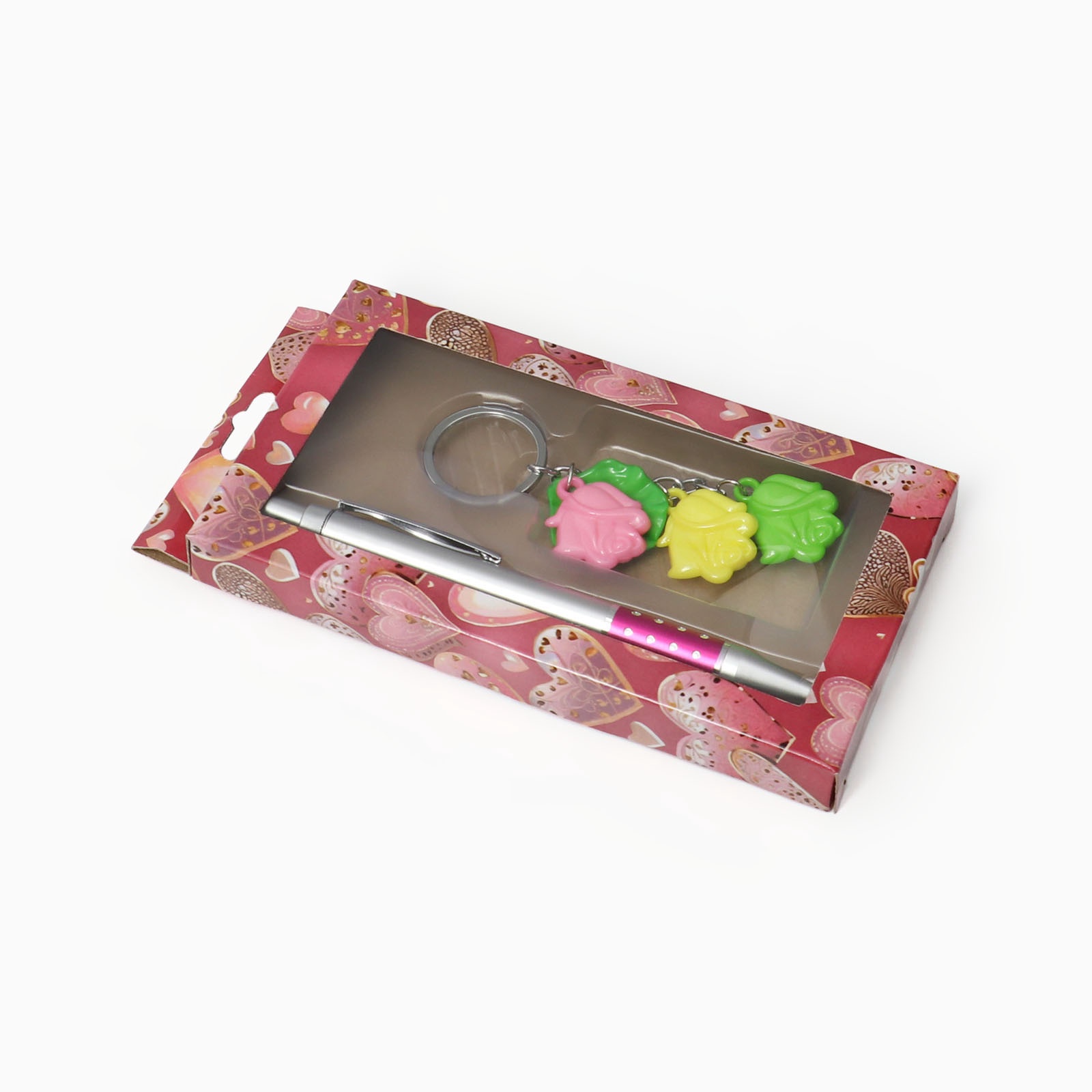 Набор подарочный, 2 предмета: ручка, брелок-цветочки. Для кого:Для женщины|Для кого:Для девочки|В наборе, шт.:2|Вид упаковки:Подарочная коробка|Тематика праздника:Универсальная тематика|Адресат:Без адресата|Составляющие набора:Брелок|Составляющие набора:Ручка|Возраст:Для взрослых|Возраст:Для детей|Страна:Китай  развернуть описание ▼