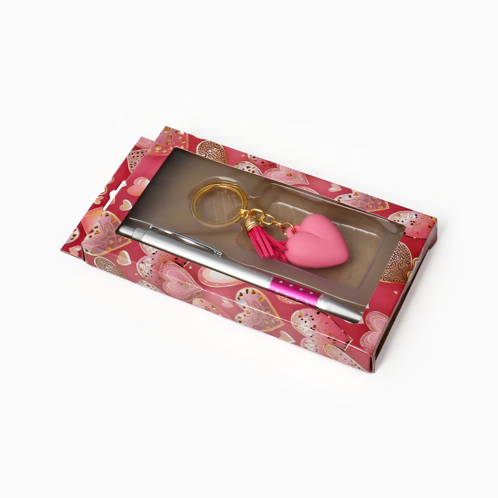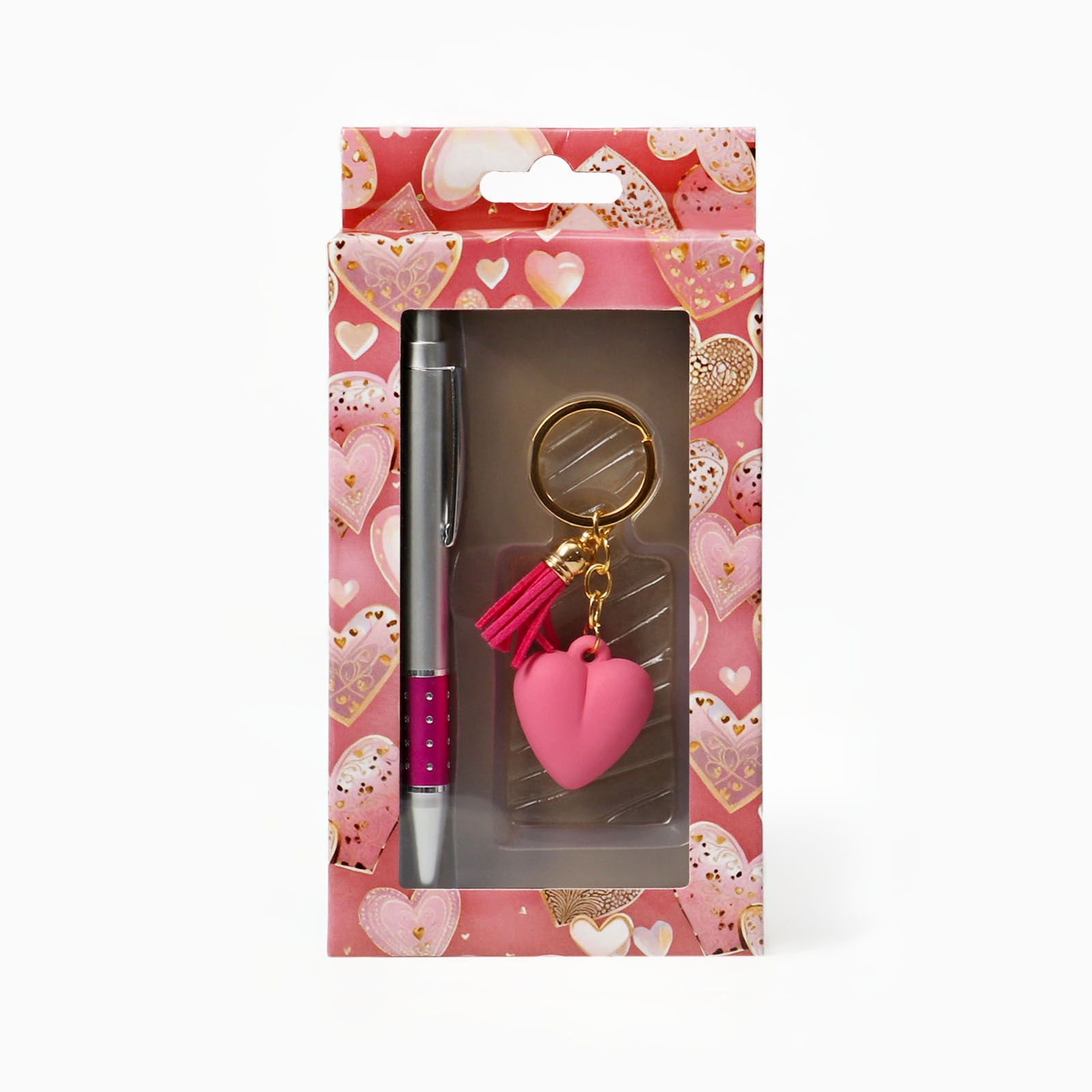 Набор подарочный 2 предмета: ручка, брелок - розовое сердечко. Для кого:Для женщины|Для кого:Для девочки|В наборе, шт.:2|Вид упаковки:Подарочная коробка|Тематика праздника:Универсальная тематика|Адресат:Без адресата|Составляющие набора:Ручка|Составляющие набора:Брелок|Возраст:Для взрослых|Возраст:Для детей|Страна:Китай  развернуть описание ▼