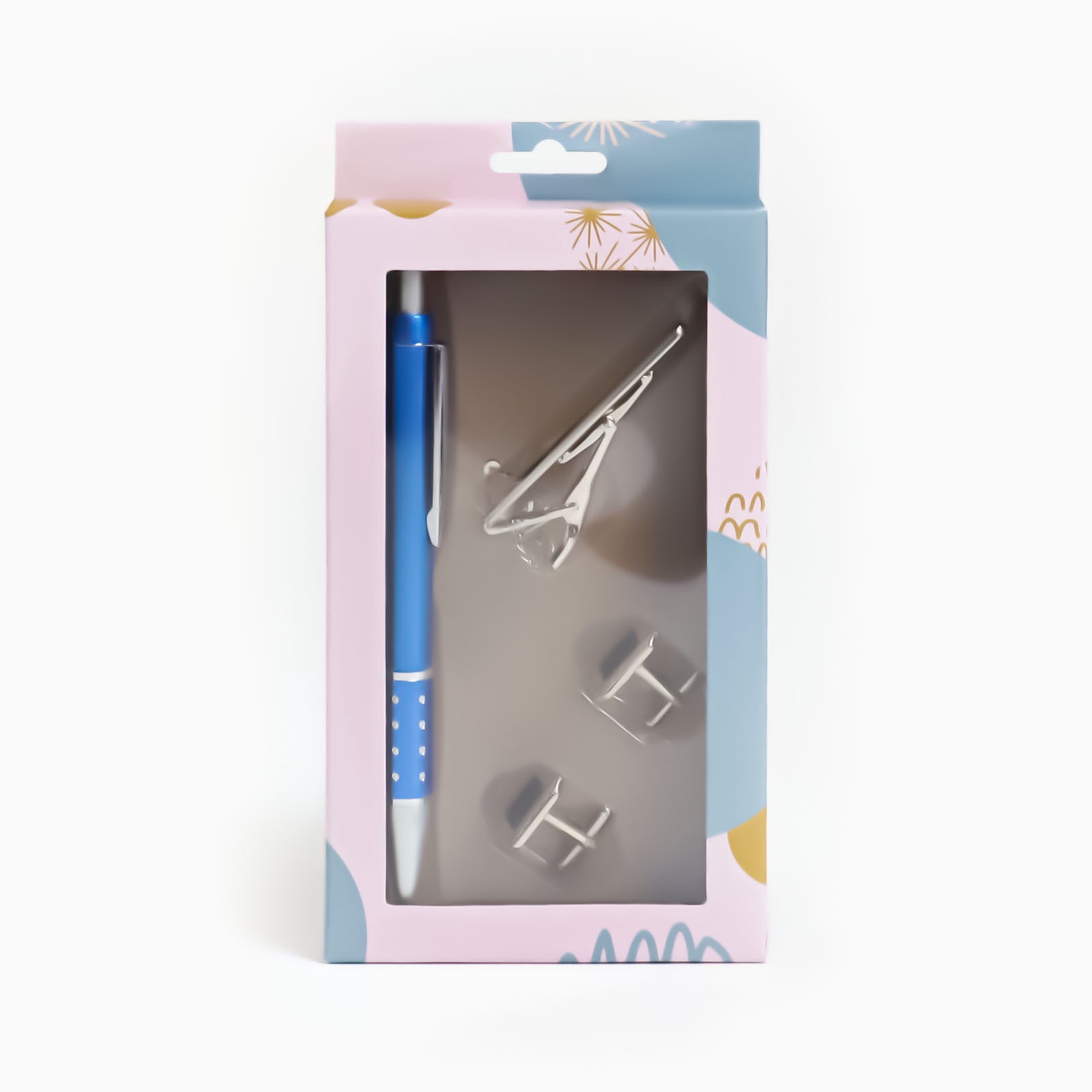 Набор подарочный, 3 предмета: ручка, заколка для галстука, запонки. Для кого:Для мальчика|Для кого:Для мужчины|В наборе, шт.:3|Вид упаковки:Подарочная коробка|Тематика праздника:Универсальная тематика|Адресат:Без адресата|Составляющие набора:Запонки|Составляющие набора:Ручка|Составляющие набора:Заколка|Возраст:Для взрослых|Возраст:Для детей|Страна:Китай  развернуть описание ▼