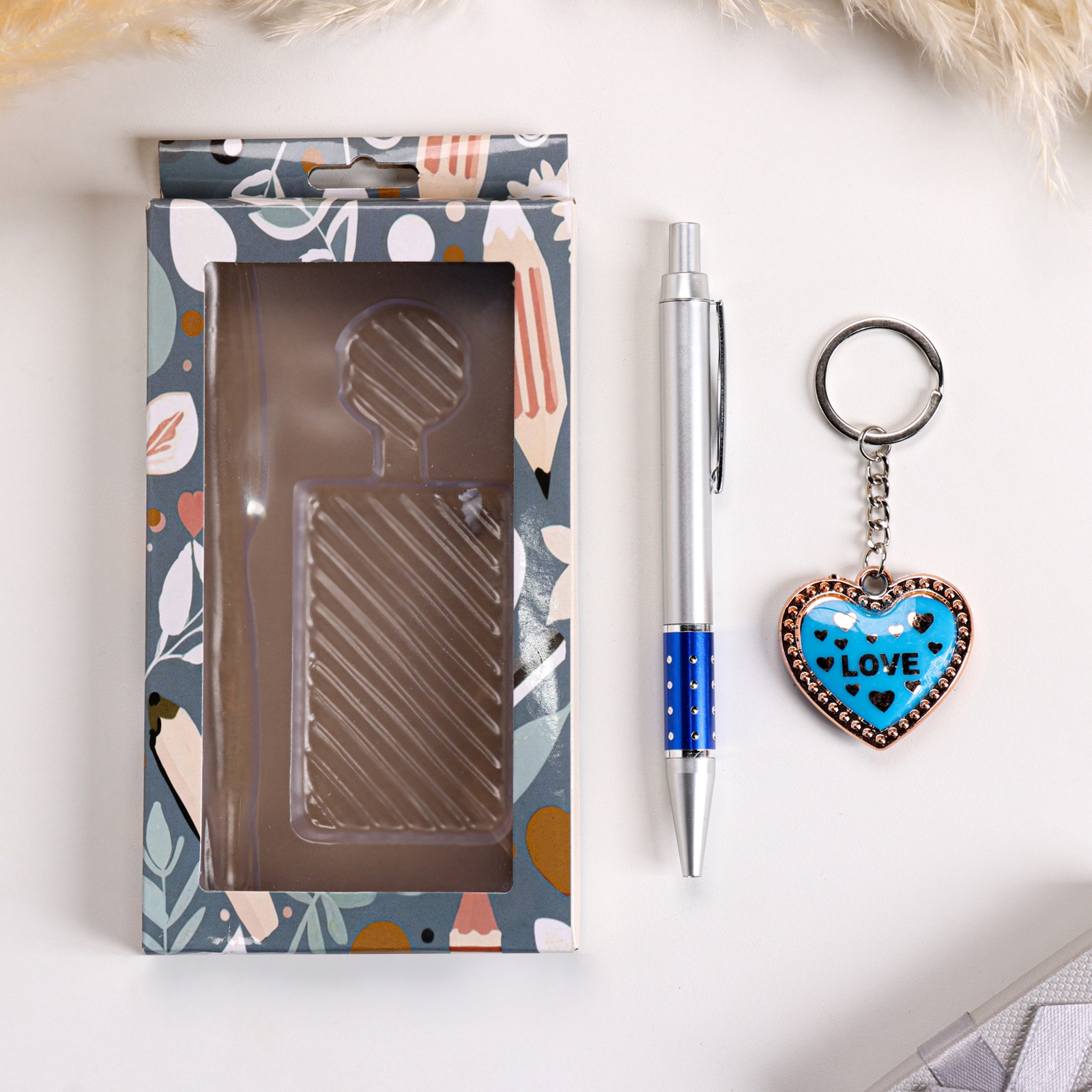 Набор подарочный 2 в 1, ручка, брелок. Для кого:Для мальчика|Для кого:Для девочки|В наборе, шт.:2|Вид упаковки:Подарочная коробка|Тематика праздника:14 Февраля|Тематика праздника:1 Сентября|Адресат:Без адресата|Составляющие набора:Ручка|Составляющие набора:Брелок|Возраст:Для детей|Страна:Китай  развернуть описание ▼