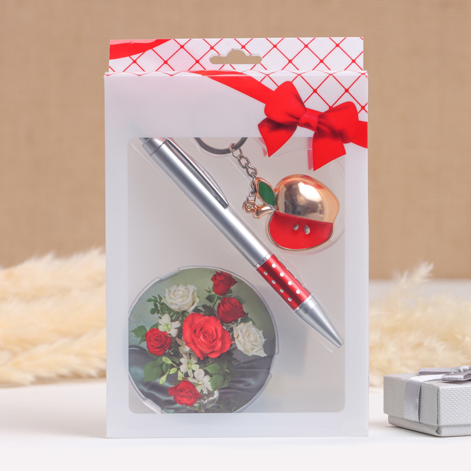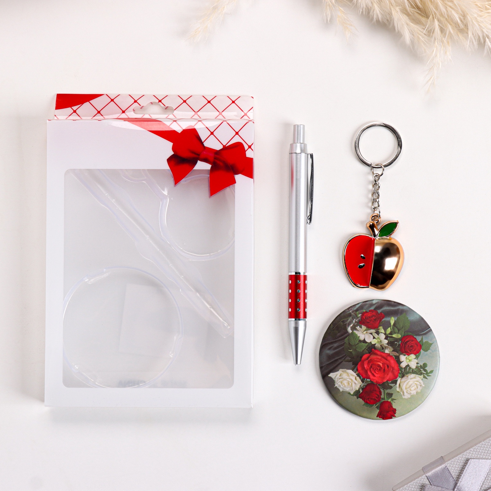 Набор подарочный 3 в 1, ручка, зеркало, брелок. Для кого:Для девочки|В наборе, шт.:3|Вид упаковки:Подарочная коробка|Тематика праздника:8 Марта|Адресат:Без адресата|Составляющие набора:Зеркало|Составляющие набора:Ручка|Составляющие набора:Брелок|Возраст:Для детей|Страна:Китай  развернуть описание ▼