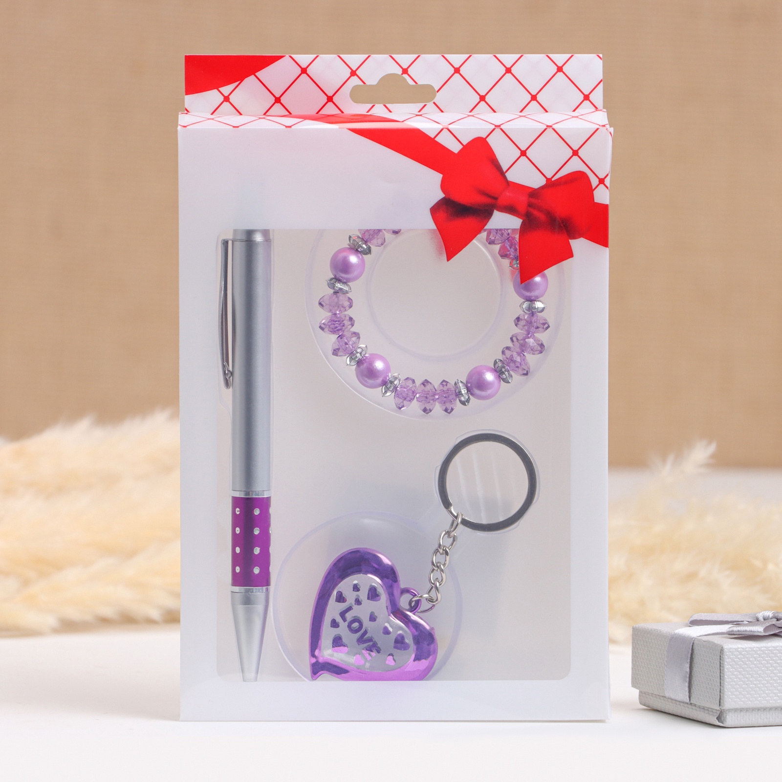Набор подарочный 3 в 1, ручка, резинка для волос, брелок