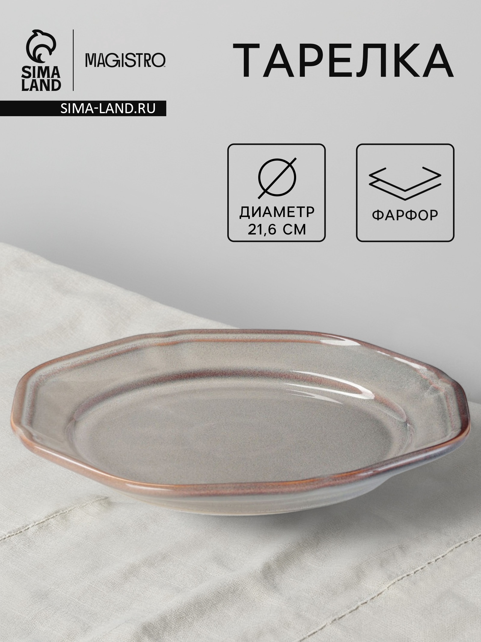 Тарелка Magistro Vintage, D=21.6 см, фарфор, серая