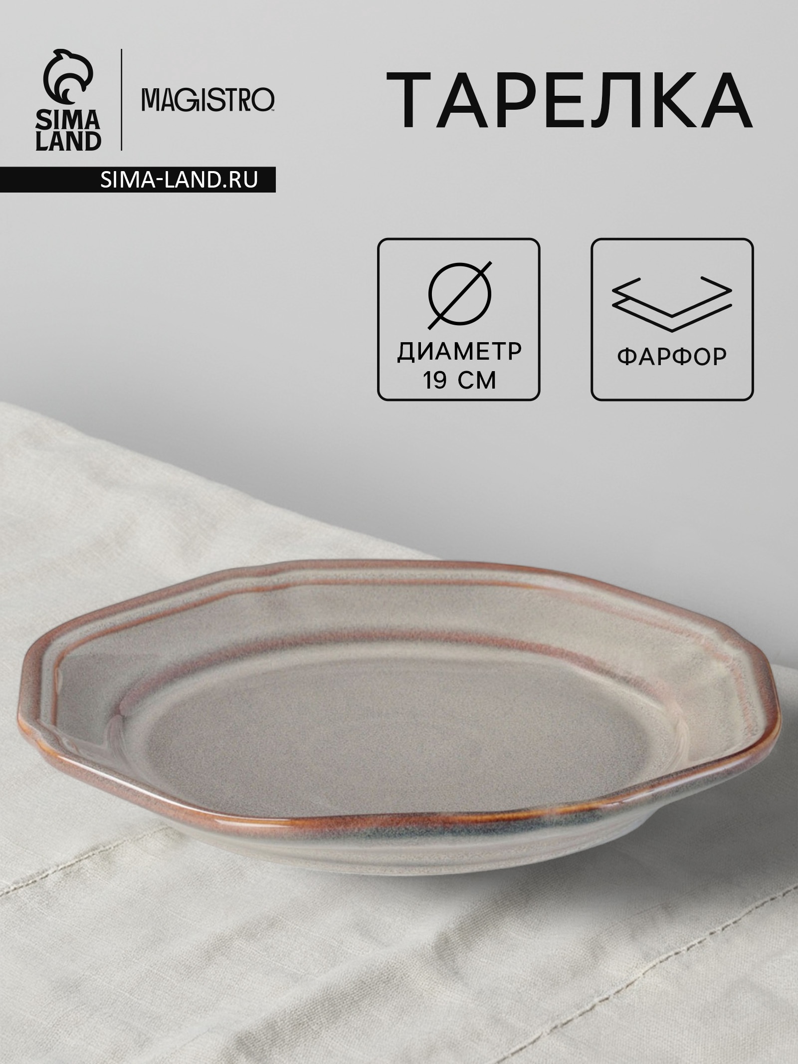 Тарелка Magistro Vintage, D=19 см, фарфор, серая