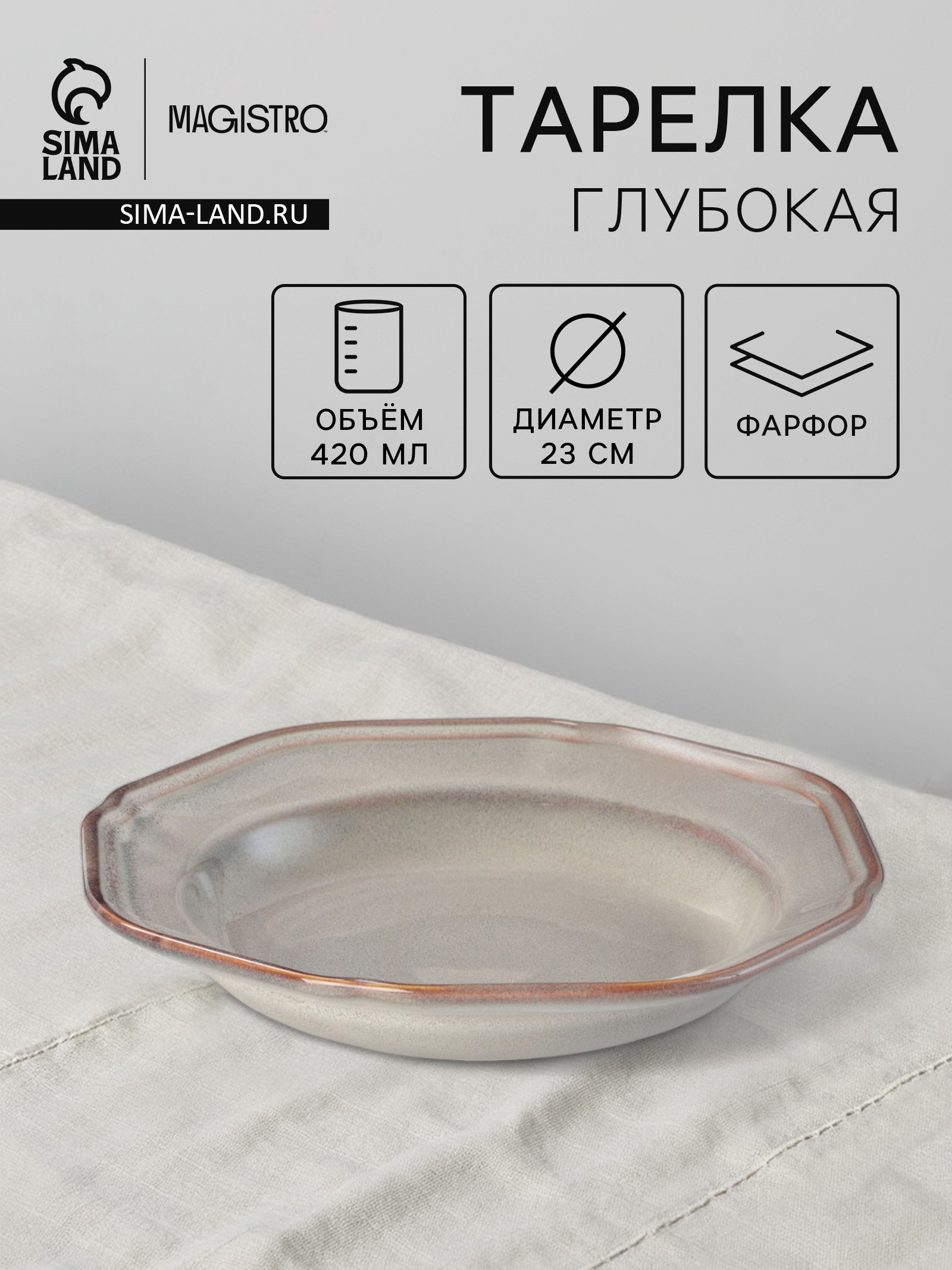 Тарелка глубокая Magistro Vintage, 420 мл, D=23 см, фарфор, серая