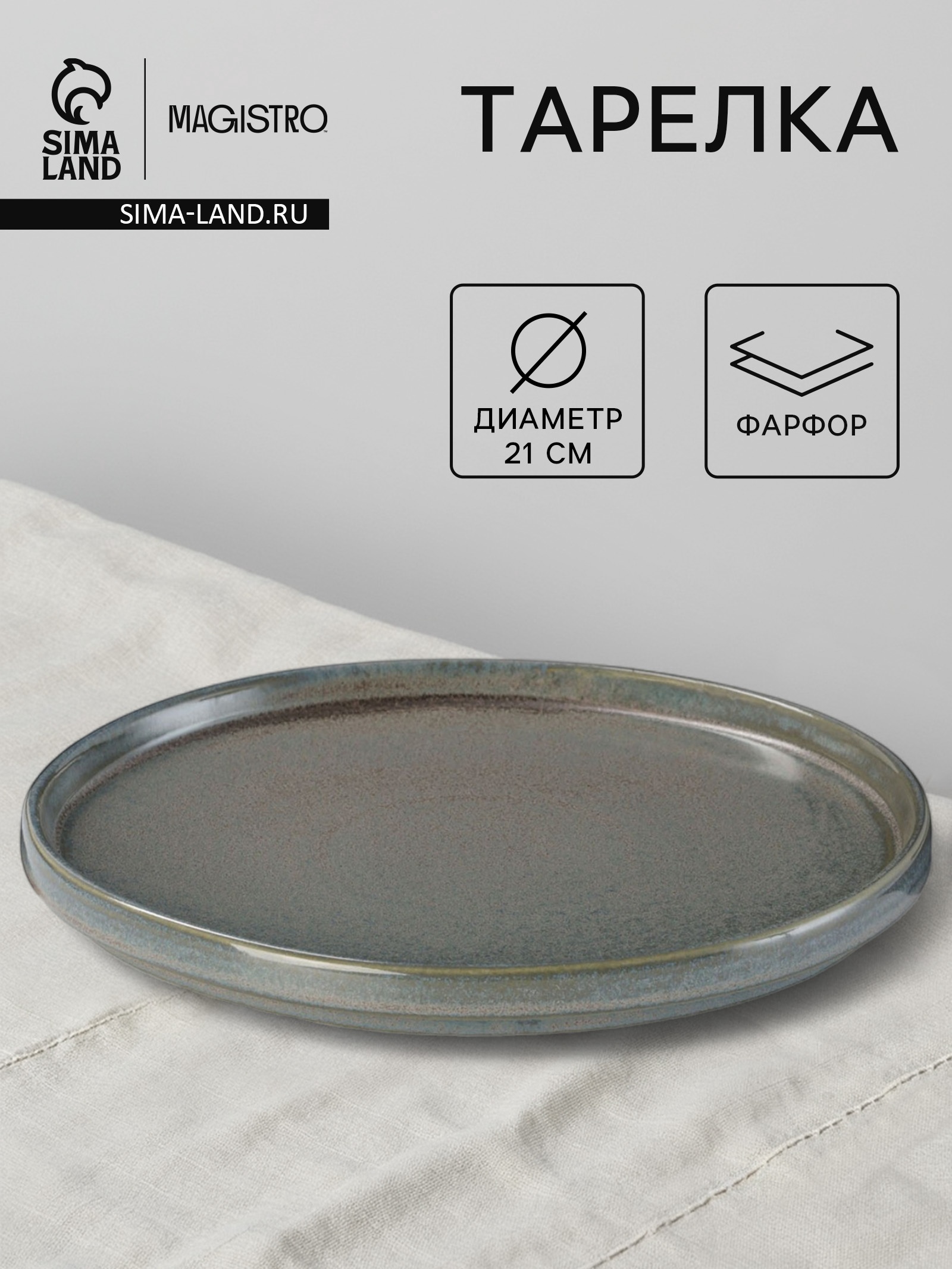 Тарелка Magistro Shadow, D=21 см, с бортом 2.2 см, фарфор, серая