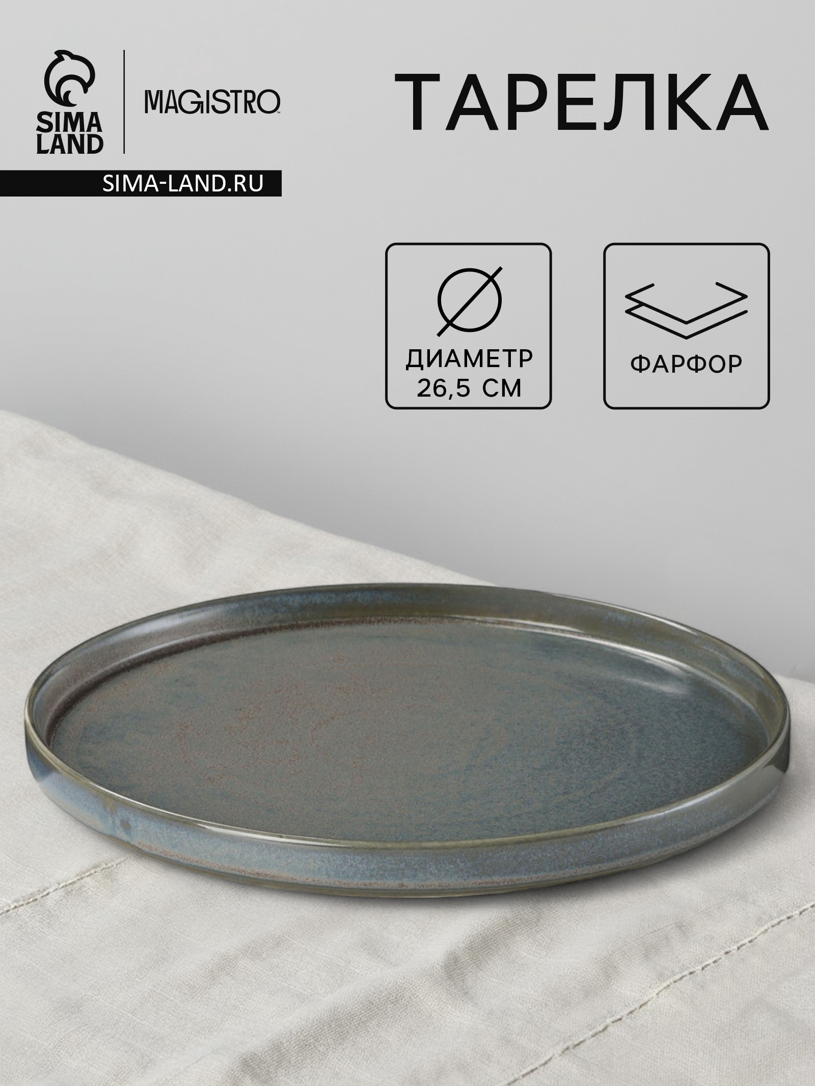 Тарелка Magistro Shadow, D=26.5, с бортом 2.5 см, фарфор, серая