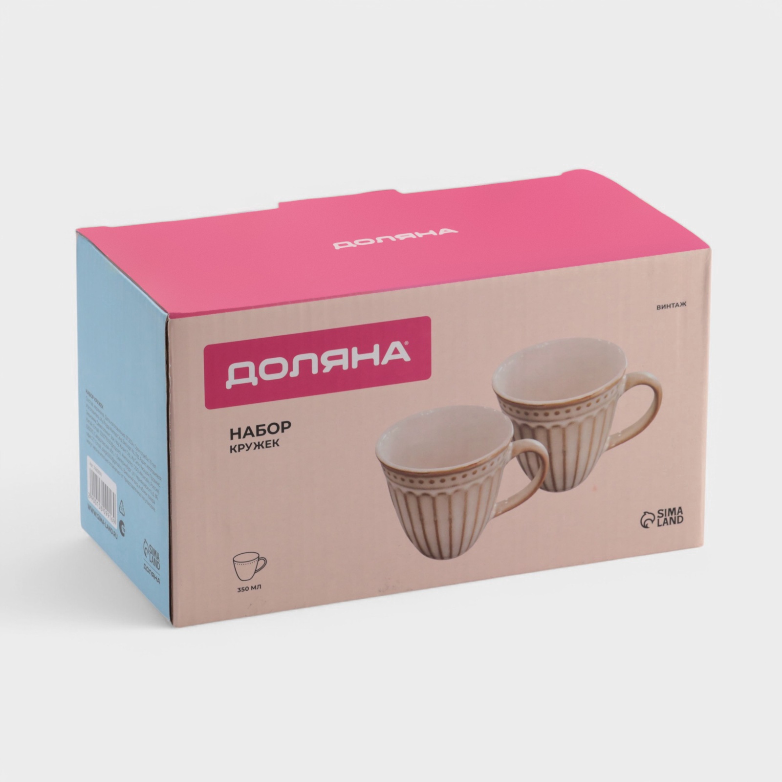 Набор кружек доляна «винтаж», 350 мл, набор 2 шт., керамика, бежевые. Создайте уютную атмосферу на вашей кухне с набором керамических кружек. Эти кружки, выполненные в винтажном стиле, станут отличным дополнением к вашему столу и подарят радость каждый раз, когда вы будете наслаждаться любимым напитком. Кружки изготовлены из высококачественной керамики, что обеспечивает их долговечность и надёжность. Бежевый цвет и рельефная текстура придают им особый шарм, а узоры в винтажном стиле делают их универсальными для любого интерьера. Объём кружек в 350 мл делает их удобными для ежедневного использования. Преимущества: Стильный дизайн: винтажный узор и бежевый цвет делают кружки не только функциональными, но и эстетически привлекательными.Удобство использования: кружки можно мыть в посудомоечной машине и использовать в микроволновой печи, что упрощает уход за ними.Качественный материал: керамика обеспечивает долговечность и сохраняет первоначальный вид даже после многократного использования.Индивидуальная упаковка: каждая кружка поставляется в индивидуальной упаковке, что делает их отличным подарком для близких.Больше наших товаров для Вас.Набор:Да|Цвет:Бежевый|Высота, см:10|В наборе, шт.:2|Диаметр дна, см:9|Объём, мл:350|Тематика:Узоры|Рисунок:Да|Материал:Керамика|Дополнительный аксессуар:Без аксессуаров|Индивидуальная упаковка:Да|Можно мыть в посудомоечной машине:Да|Можно использовать в СВЧ-печи:Да|Текстура:С рельефом|Особенности:Без особенностей|Матовая поверхность:Нет|Страна:Китай  развернуть описание ▼