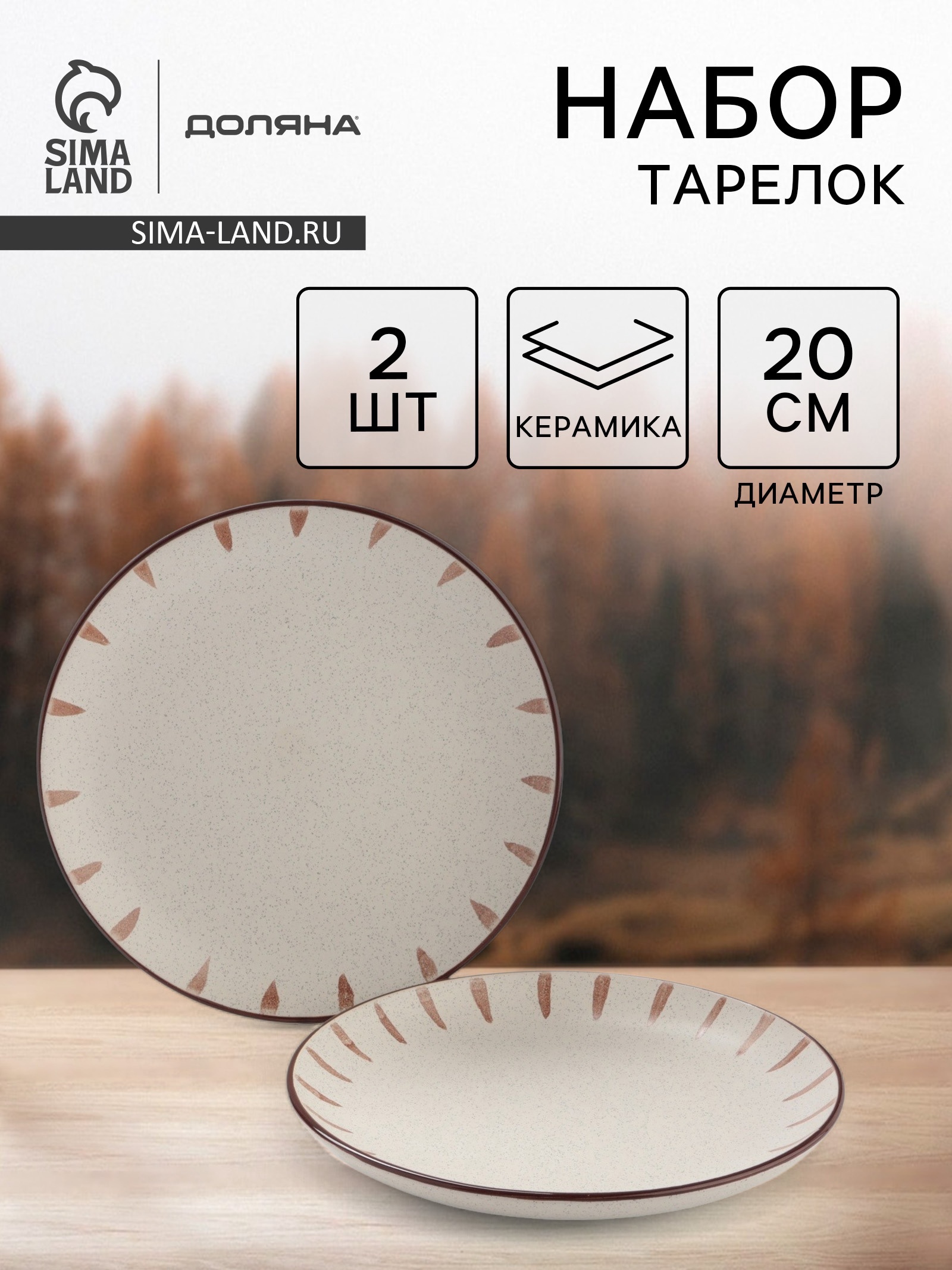 Тарелки доляна «скандинавия», D=20 см, набор 2 шт., керамика, бежевые