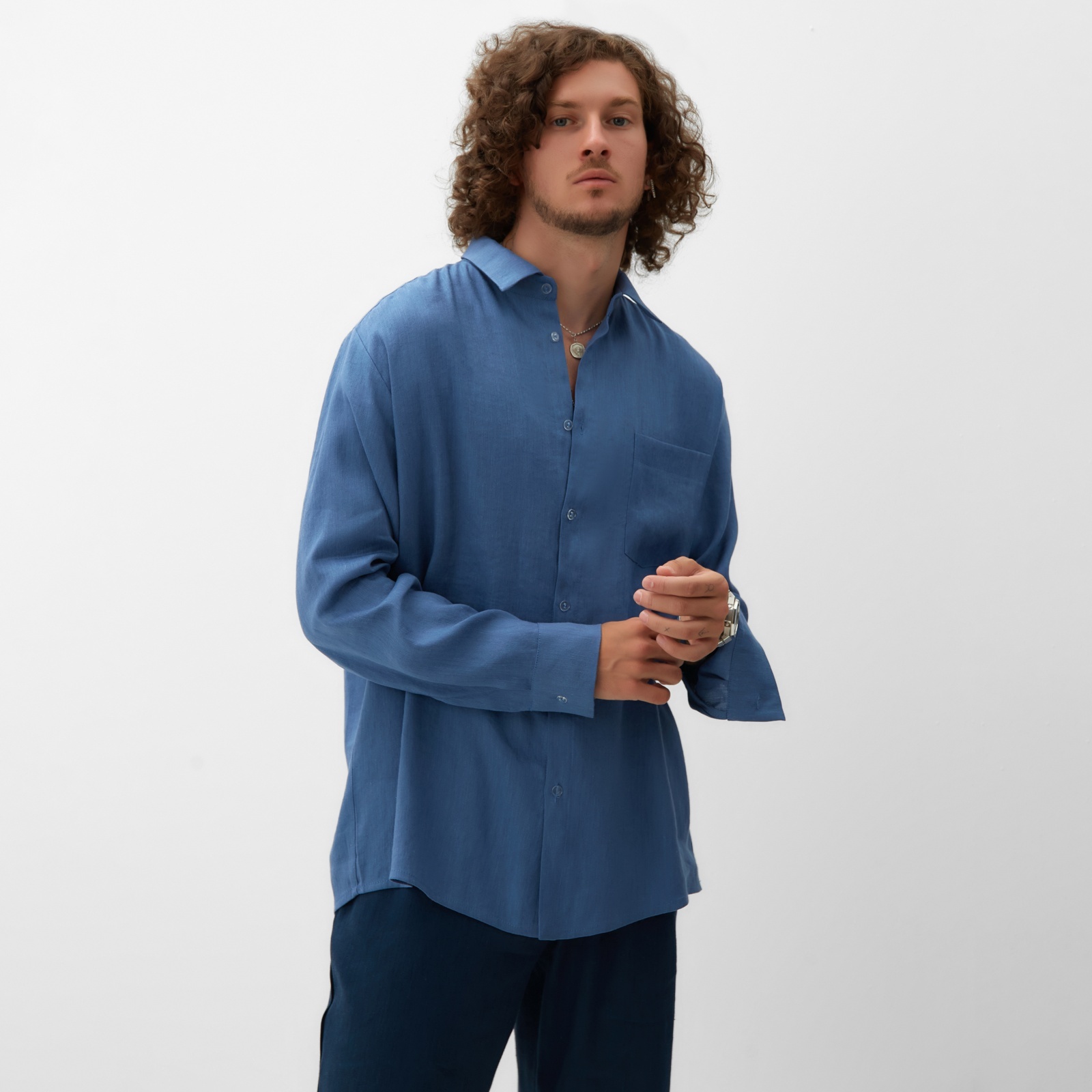 Рубашка мужская с длинным рукавом mist, размер 56, синяя. Синий оттенок придаёт образу строгости, но не выглядит мрачно. Крой — точный, без лишней свободности, повторяет форму тела, но не сковывает движения. Это не одежда ради вида — это вещь, которая работает на тебя: легко носится, быстро восстанавливается после стирки и остаётся актуальной сезон за сезоном. Почему она стоит внимания: Универсальный цвет. Синий сочетает в себе строгость и свежесть, подходя как для офиса, так и для свободного времени.Функциональные рукава. Длинные рукава можно закатать, адаптируя рубашку под разную погоду и настроение.Комфорт при носке. Материал дышит, не вызывает раздражения, не электризуется.Лёгкий уход. После стирки сохнет быстро, сохраняет цвет и структуру ткани.Точный крой под размер 56. Соответствует заявленным параметрам, не висит, не давит, садится аккуратно по плечам и груди.Это не просто мужская рубашка. Это базовая вещь, которую можно носить снова и снова, не задумываясь о моде, но оставаясь в тренде. Надеваешь и сразу чувствуешь, что всё на месте: стиль, покой и уверенность в своём внешнем виде. Цвет:Синий|Для кого:Для мужчины|Размер:56|Рост, см:175 - 185|Сезон:Всесезонный|Длина рукава:Длинный|Состав ткани:Лён|Состав ткани:Вискоза|Тип силуэта:Прямой|Страна:Россия  развернуть описание ▼