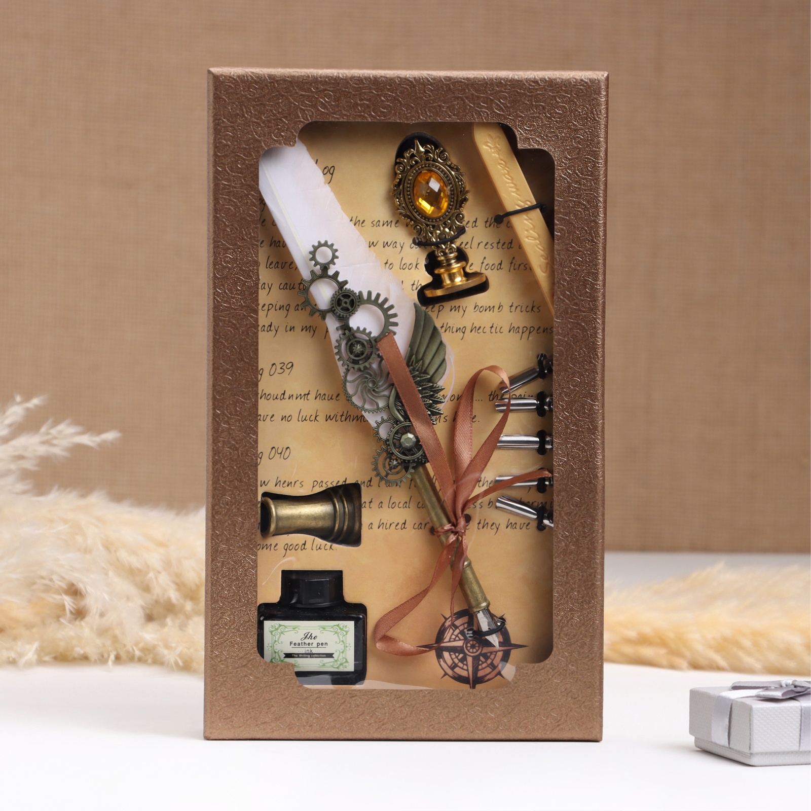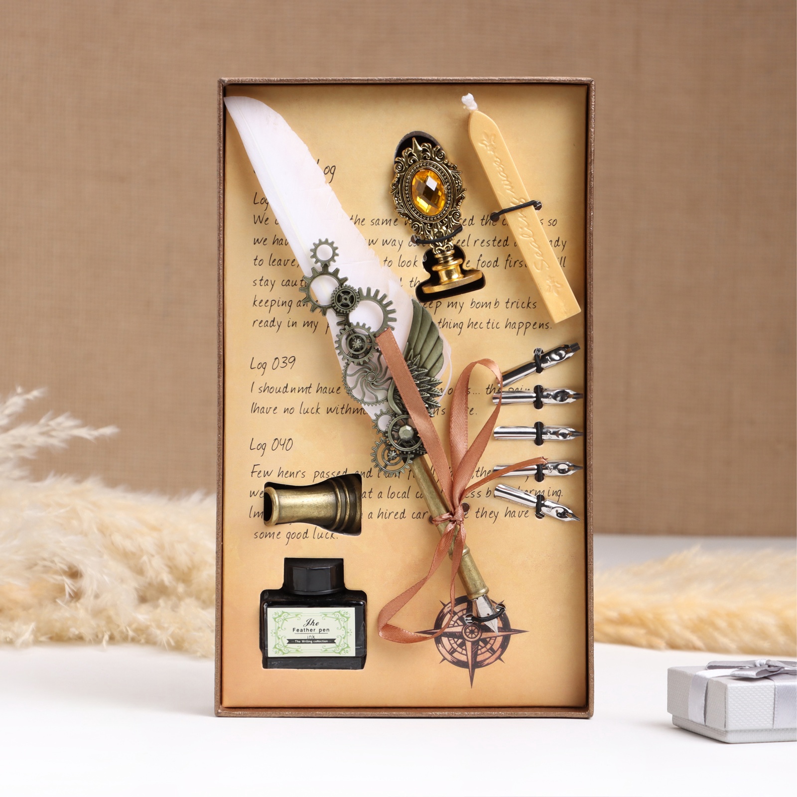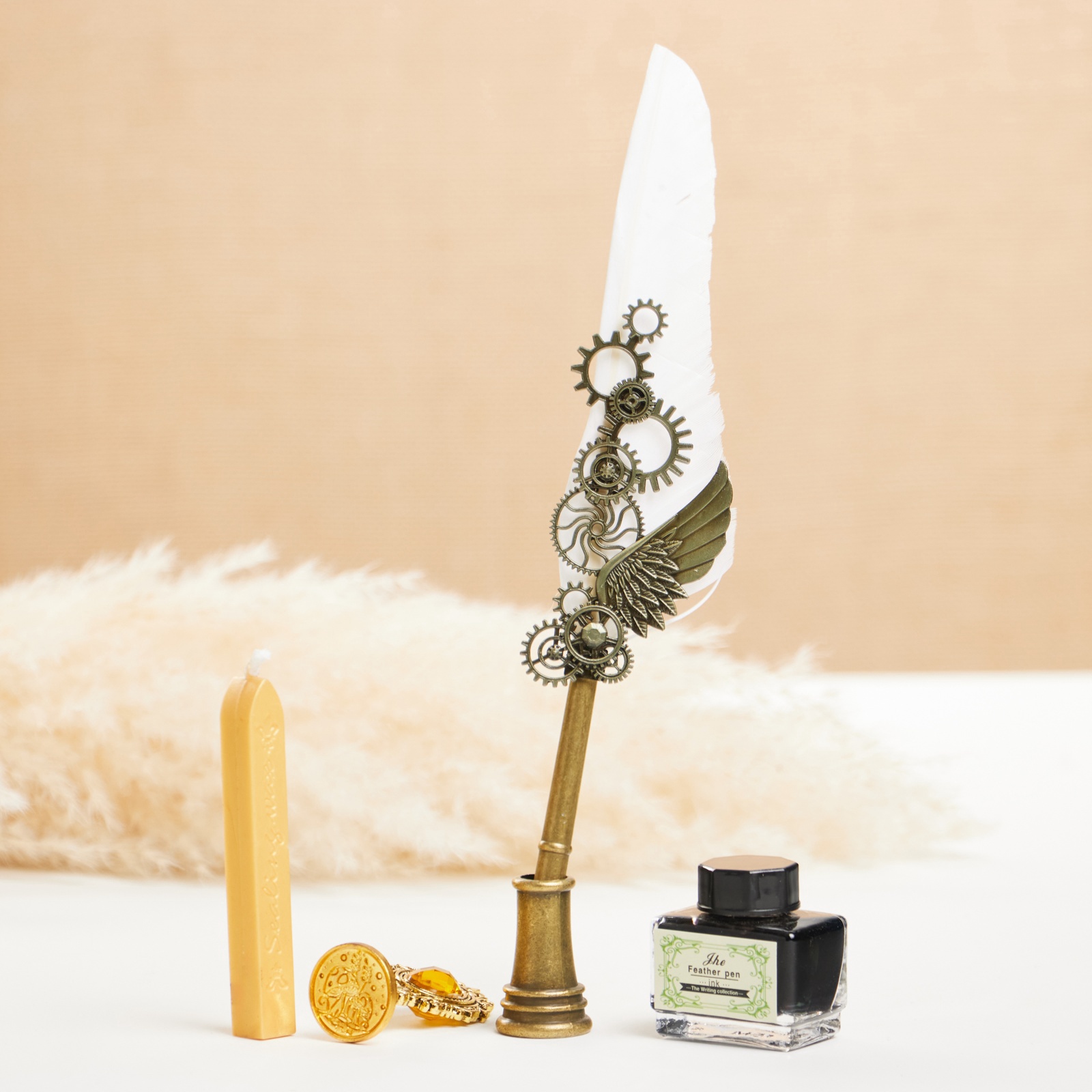 Набор подарочный 5 в 1 «стимпанк»: перьевая ручка белая, чернила, наконечники, печать, воск. Для кого:Унисекс|Для кого:Для девочки|Для кого:Для мальчика|Для кого:Для мужчины|Для кого:Для женщины|В наборе, шт.:5|Вид упаковки:Подарочная коробка|Тематика праздника:Универсальная тематика|Адресат:Без адресата|Составляющие набора:Воск для печатей|Составляющие набора:Чернила|Составляющие набора:Перьевая ручка|Составляющие набора:Печать|Составляющие набора:Наконечники для перьевой ручки|Возраст:Для взрослых|Страна:Китай  развернуть описание ▼