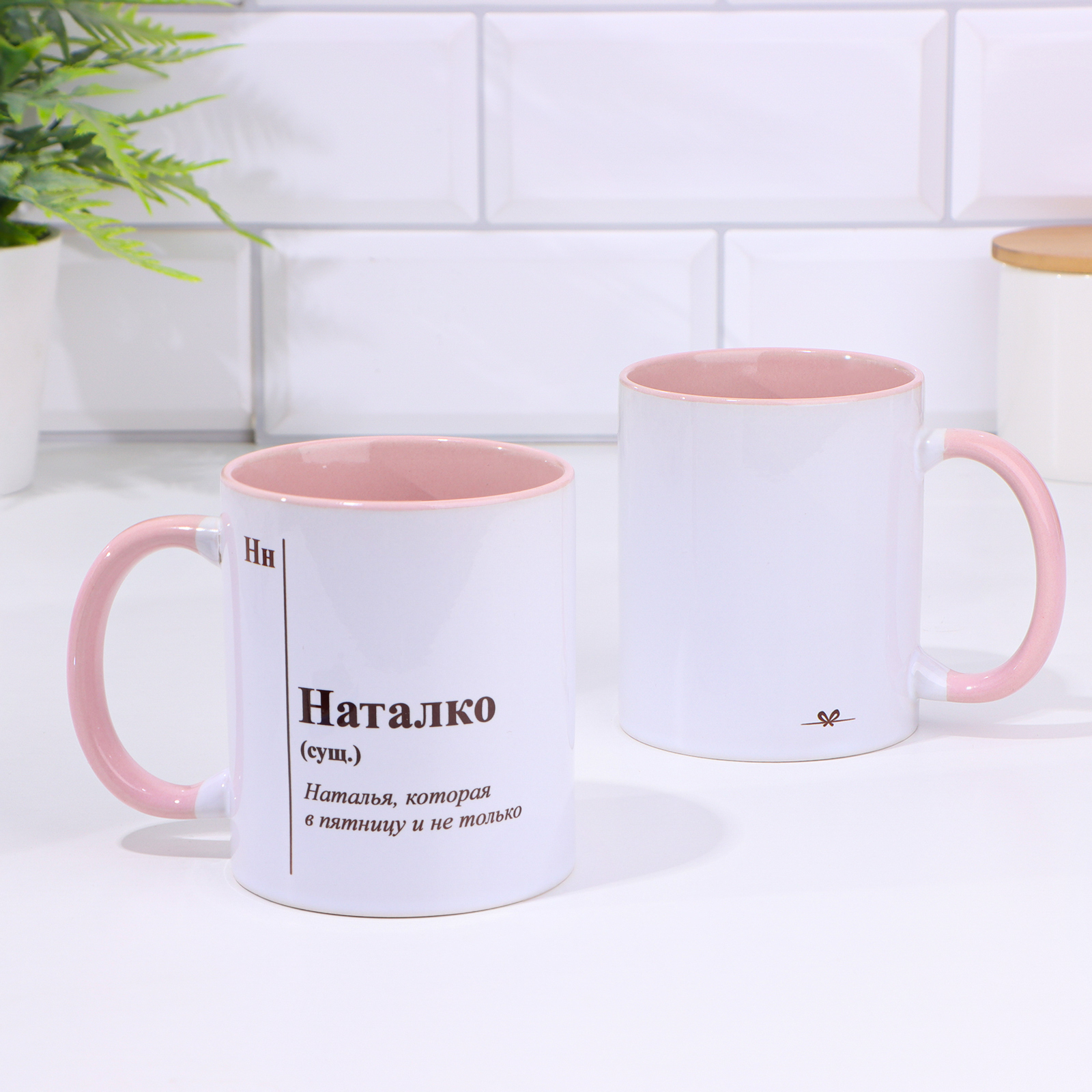 Кружка именная, сублимация "наталко", дно розового цвета
