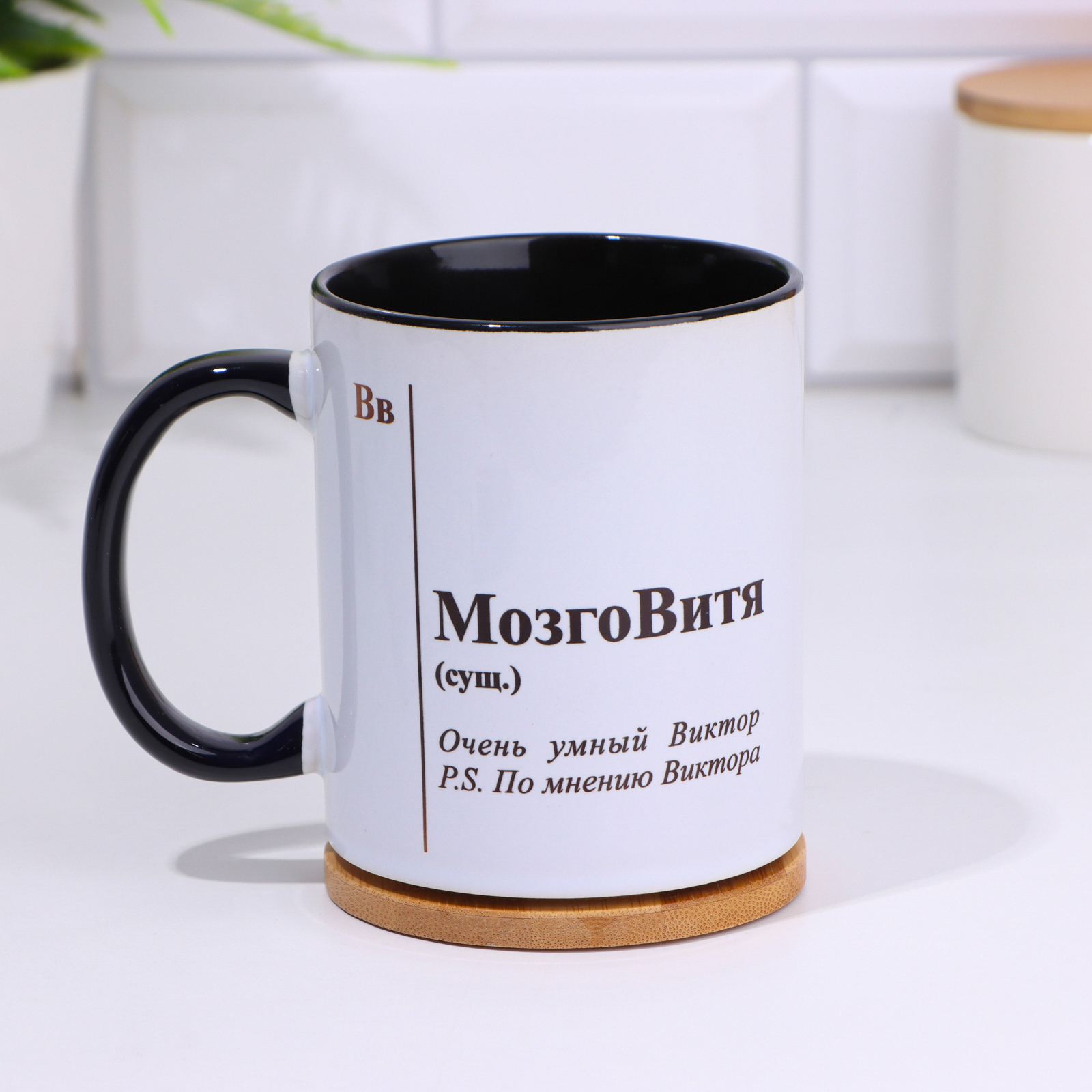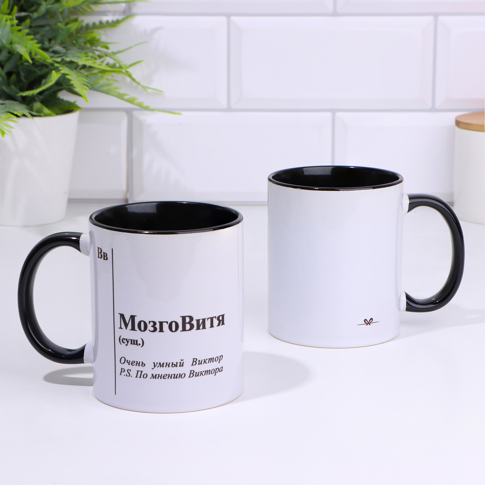 Кружка именная, сублимация "мозговитя", дно черного цвета