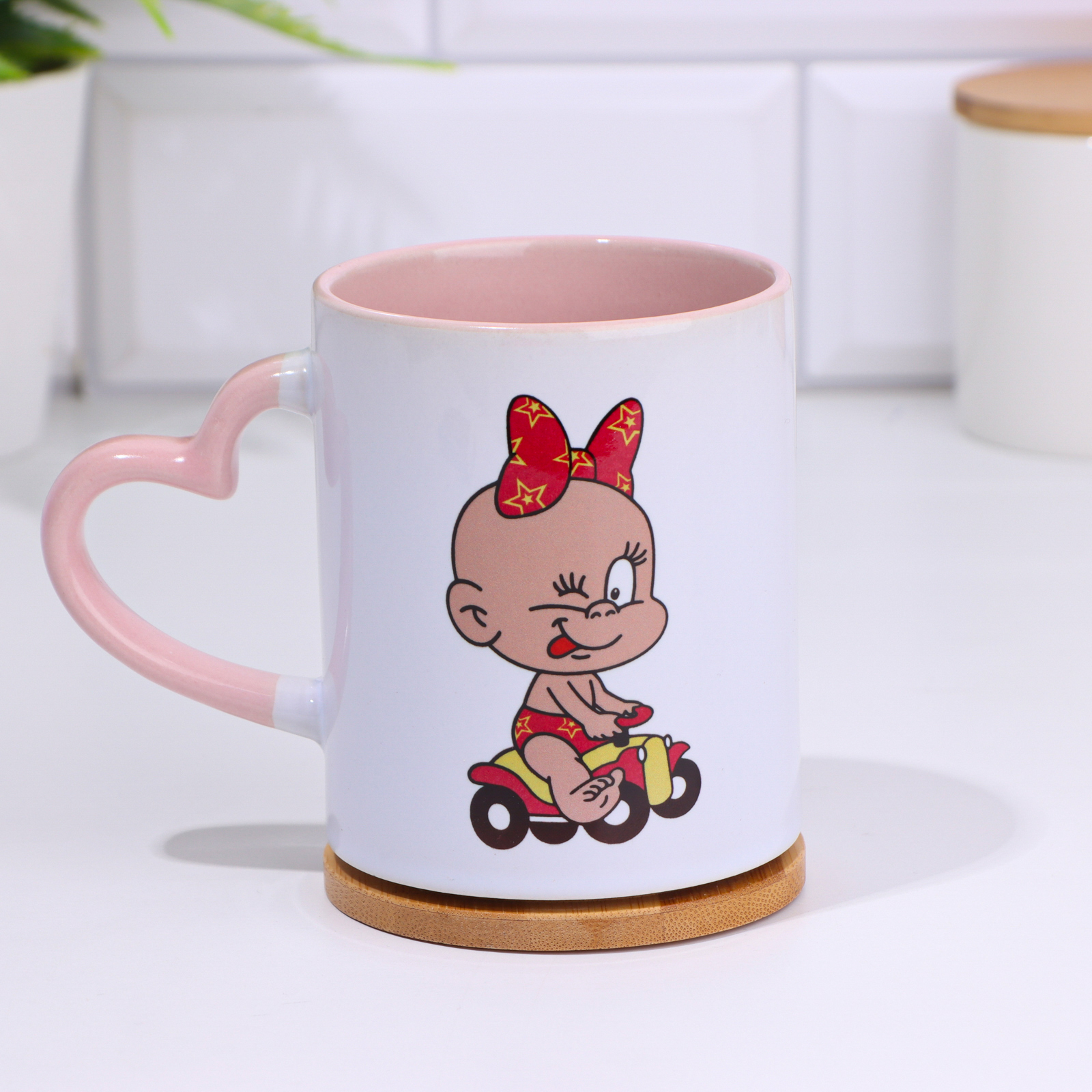 Кружка сублимация "я девочка творческая", с фигурной ручкой, дно розового цвета