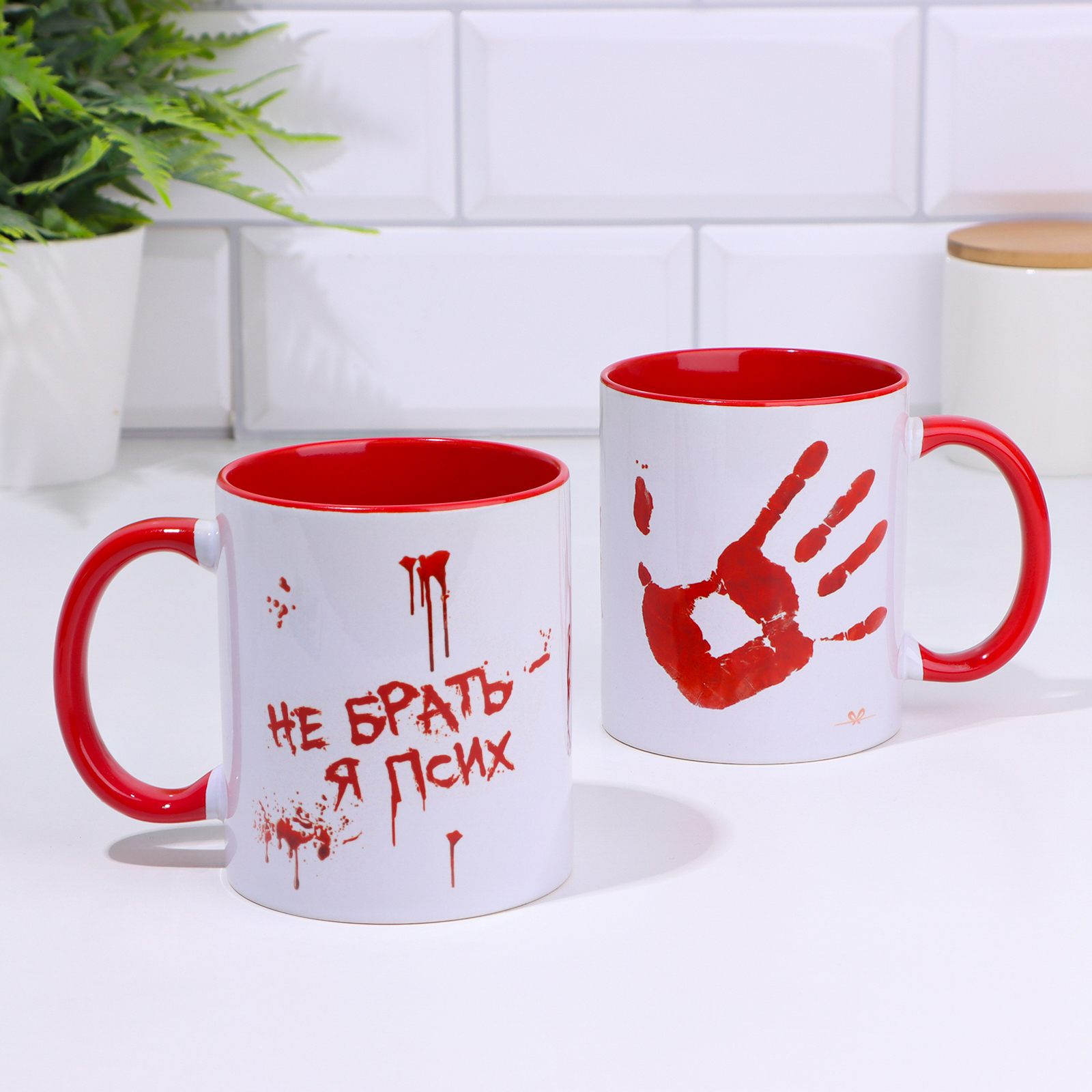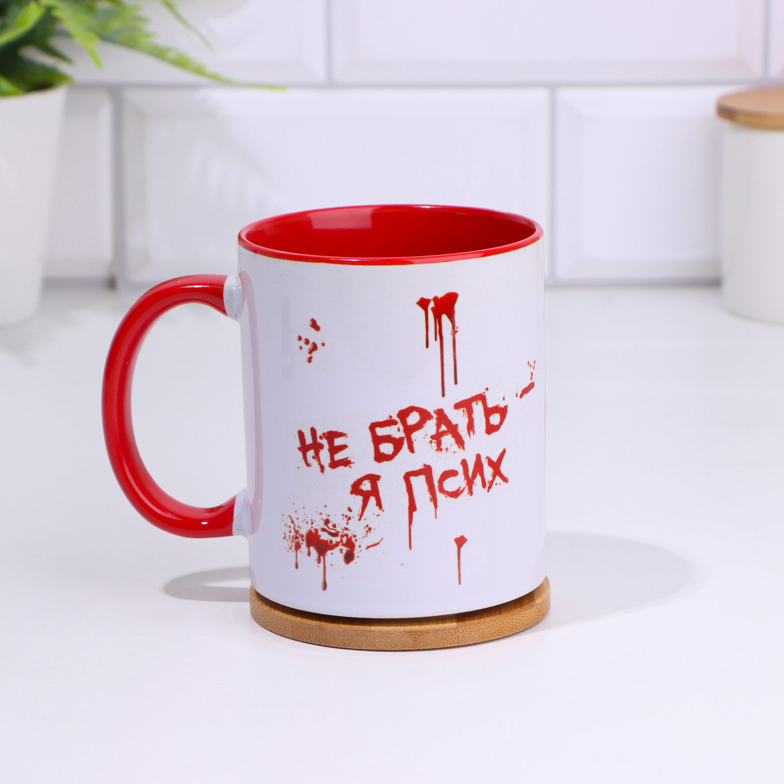 Кружка, сублимация "не брать-я псих", дно красного цвета