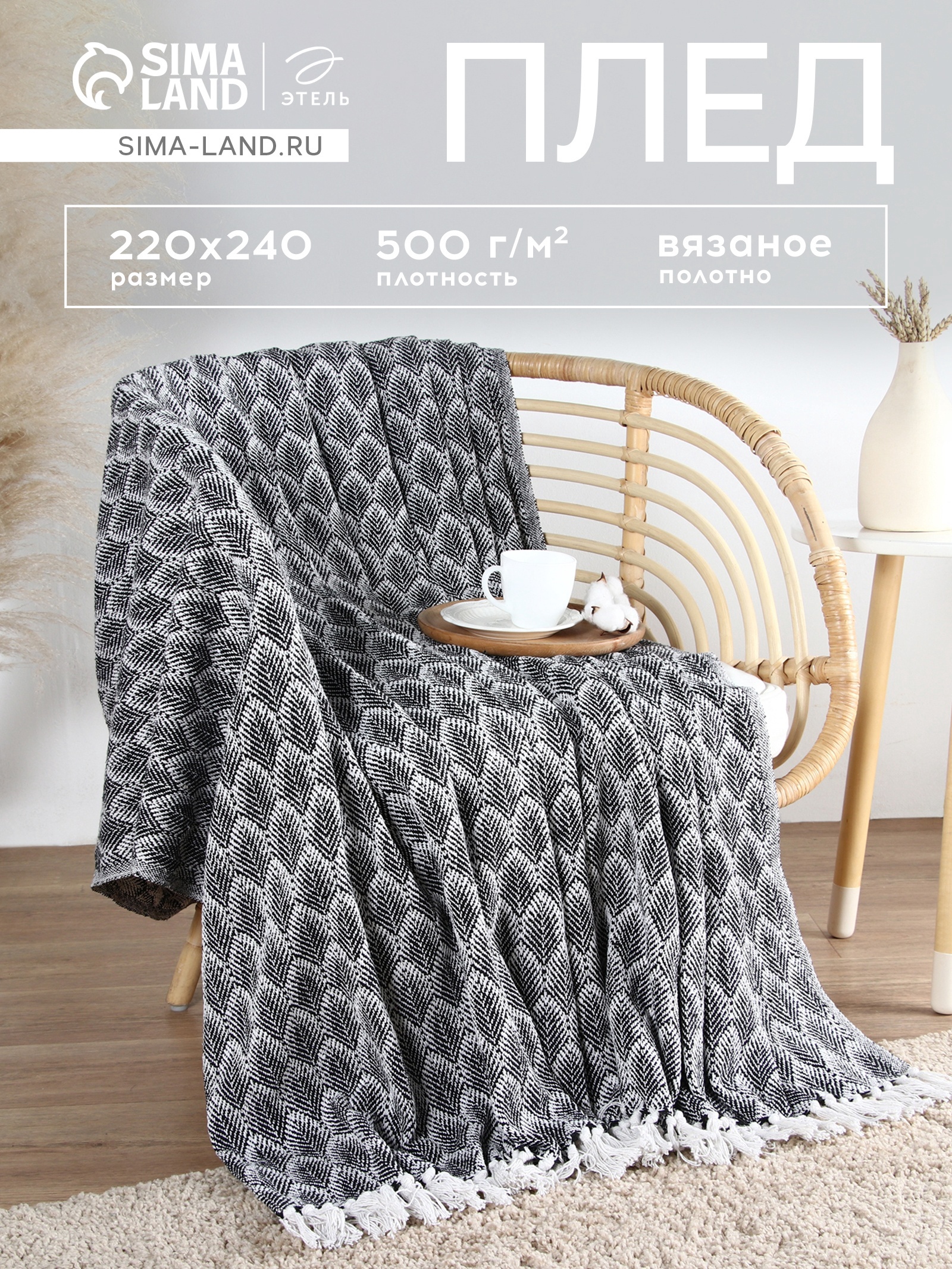 Плед с кисточками «этель» Leaves, 220 240 см, 500 г/м