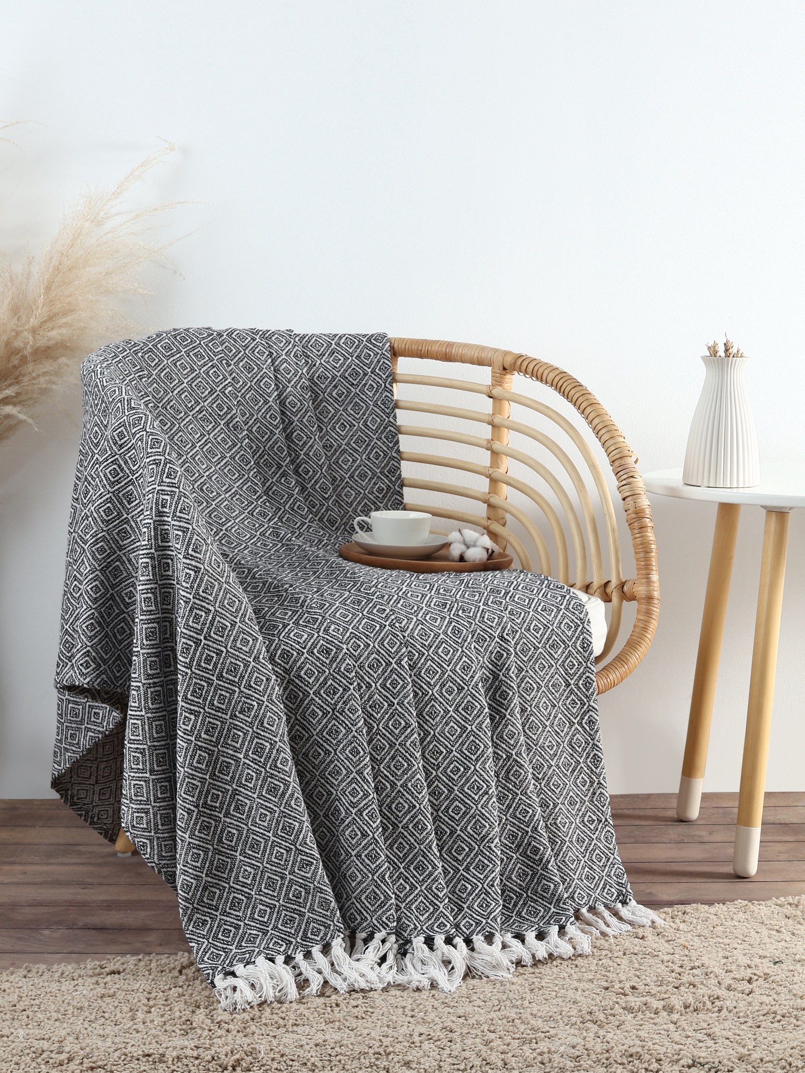 Плед с кисточками «этель» Diamond, 220 240 см, чёрный, 400 г/м