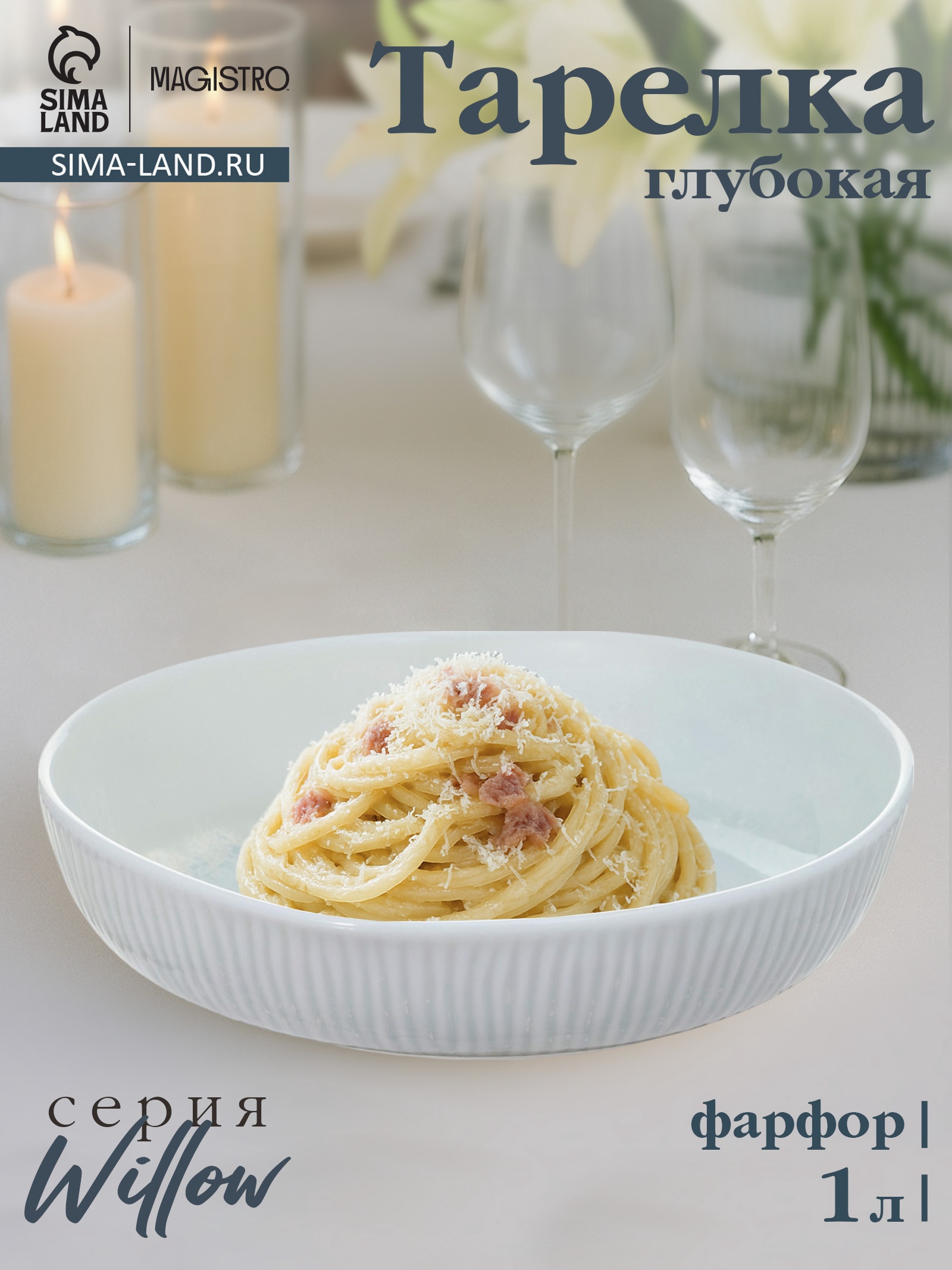 Тарелка глубокая Magistro Willow, D=20.9 см, 1 л, фарфор, голубая