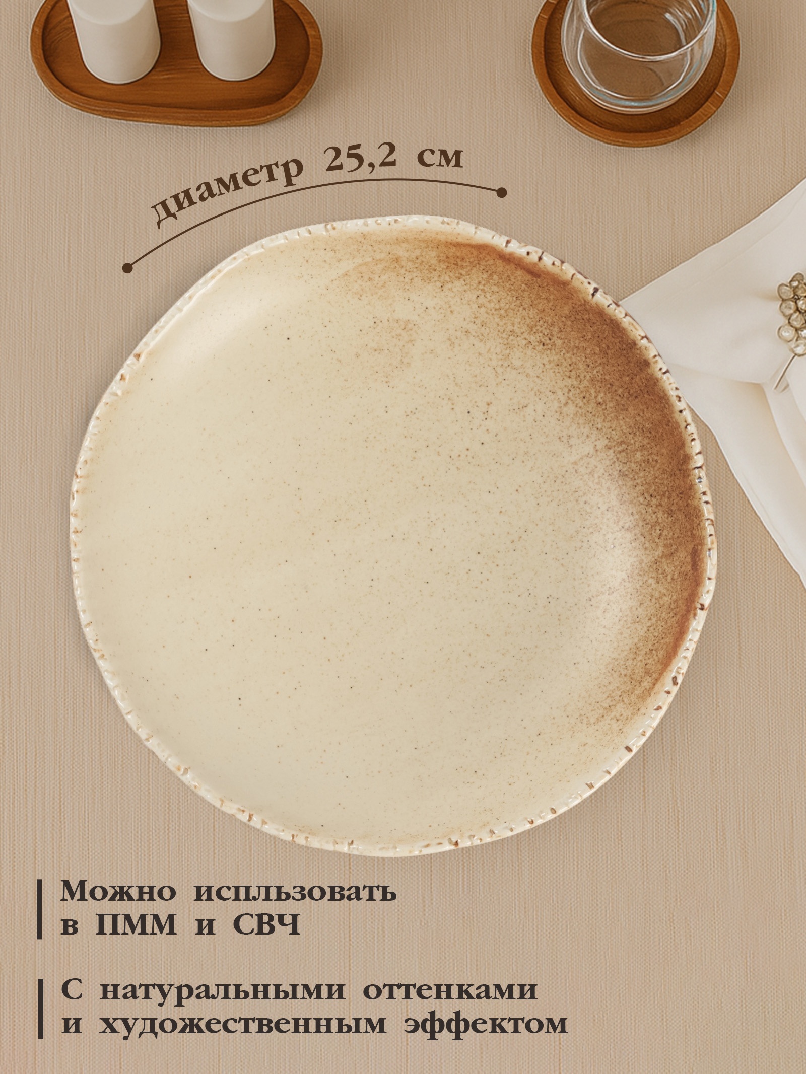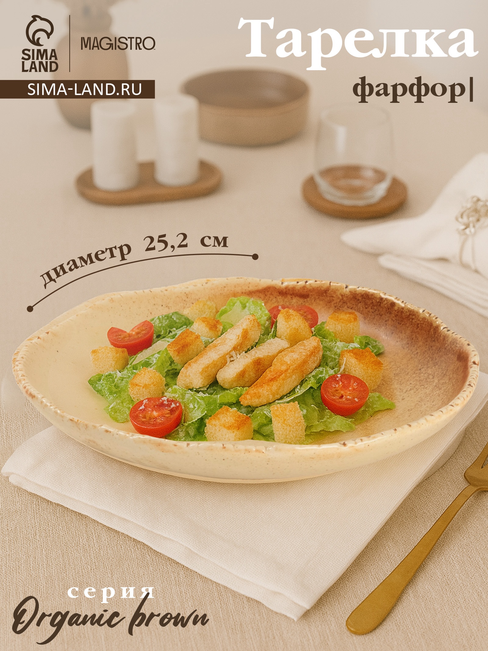 Тарелка глубокая Magistro Organic Brown, 1 л, 25.2 25 5.3 см, фарфор, бежевая