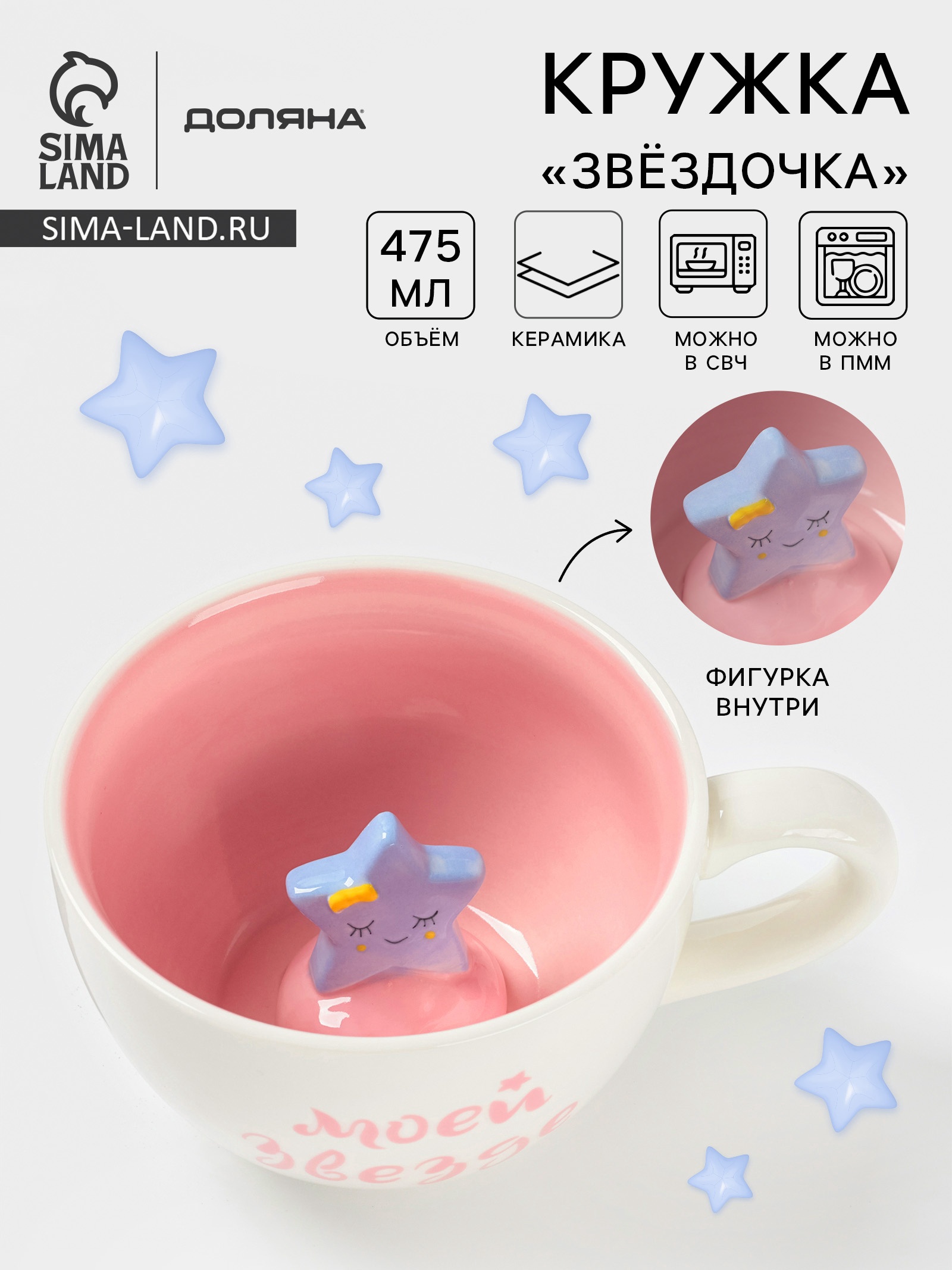 Кружка доляна «звёздочка», 475 мл, керамика, белая, розовая