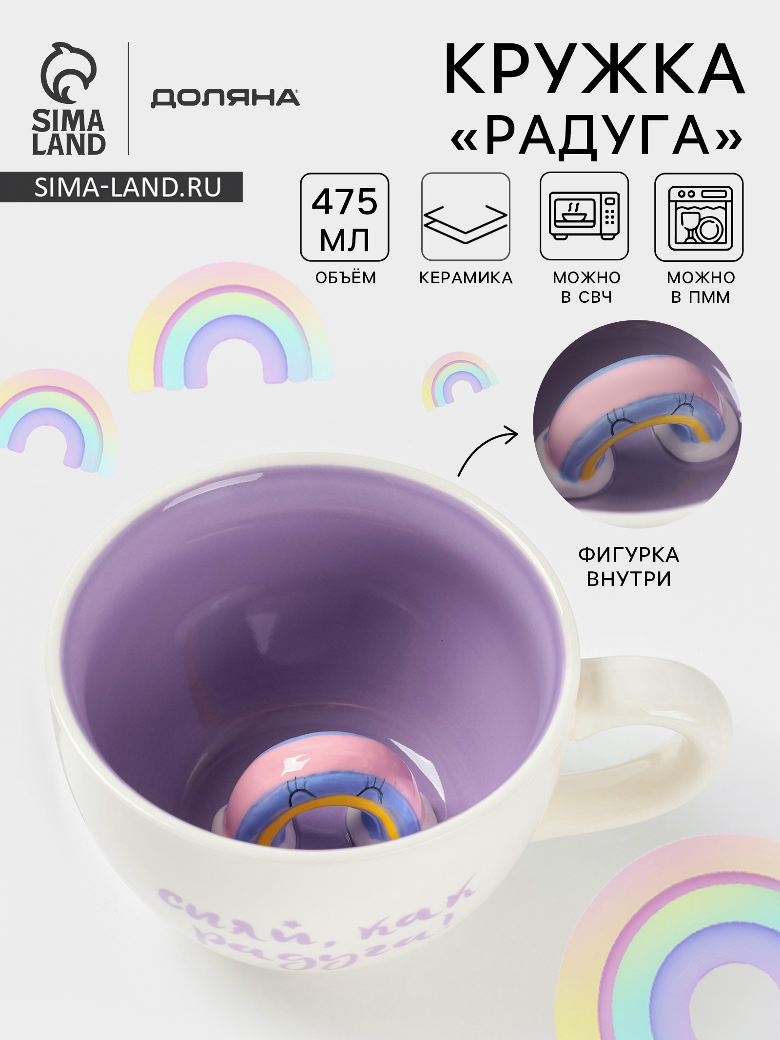 Кружка доляна «радуга», 475 мл, керамика, белая/сиреневая