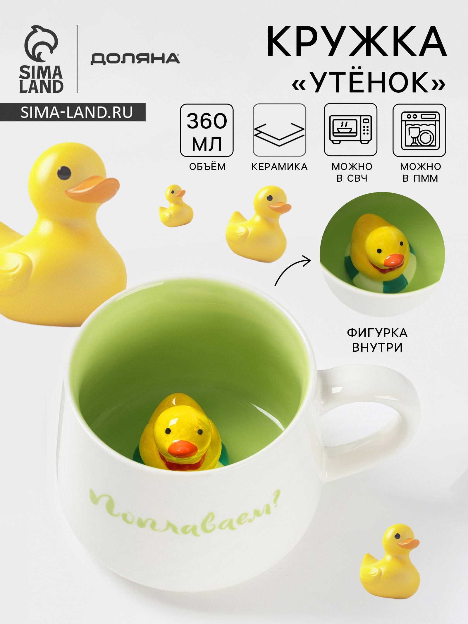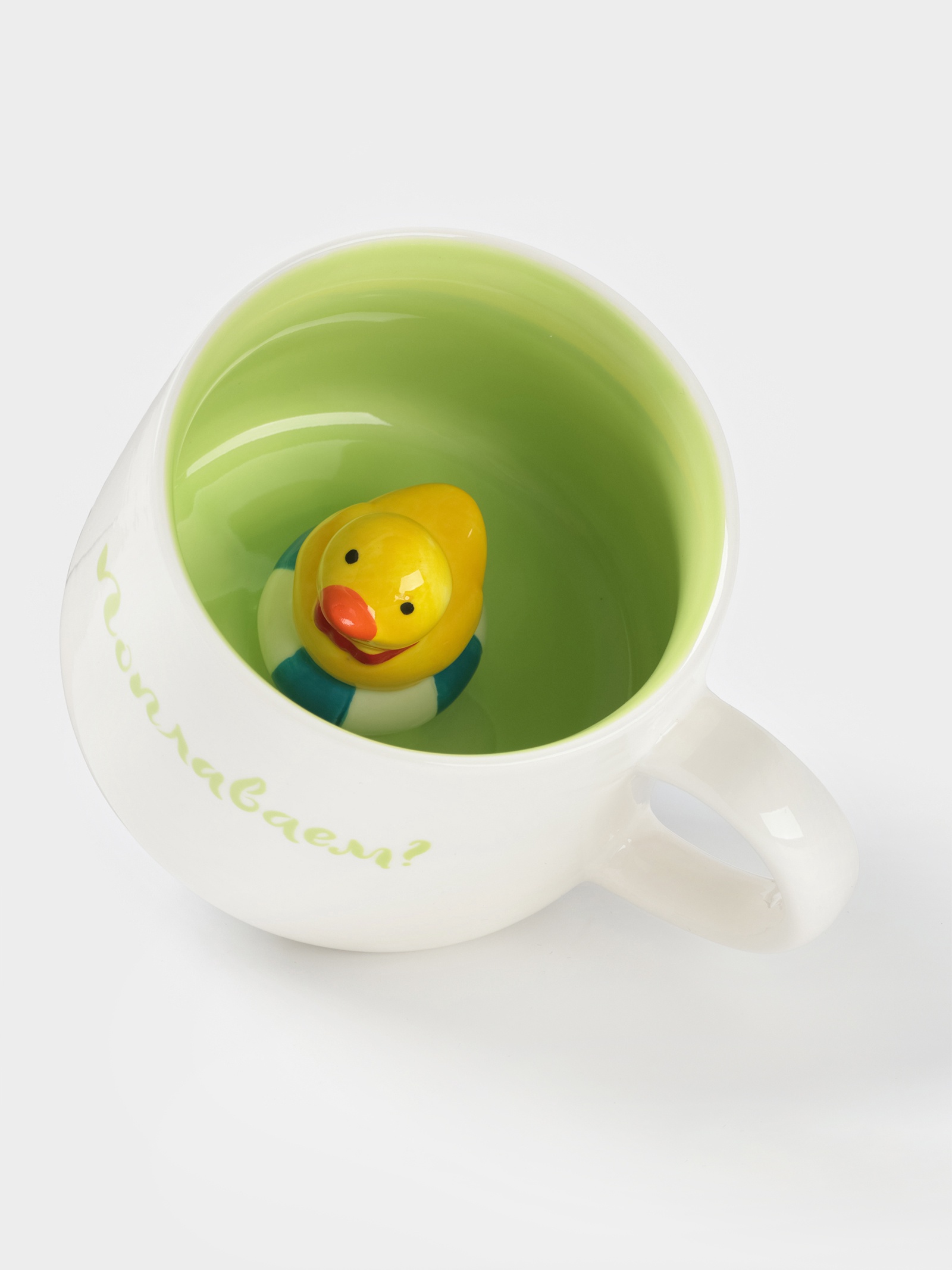 Кружка доляна «утенок», 360 мл, керамика, белая, зелёная