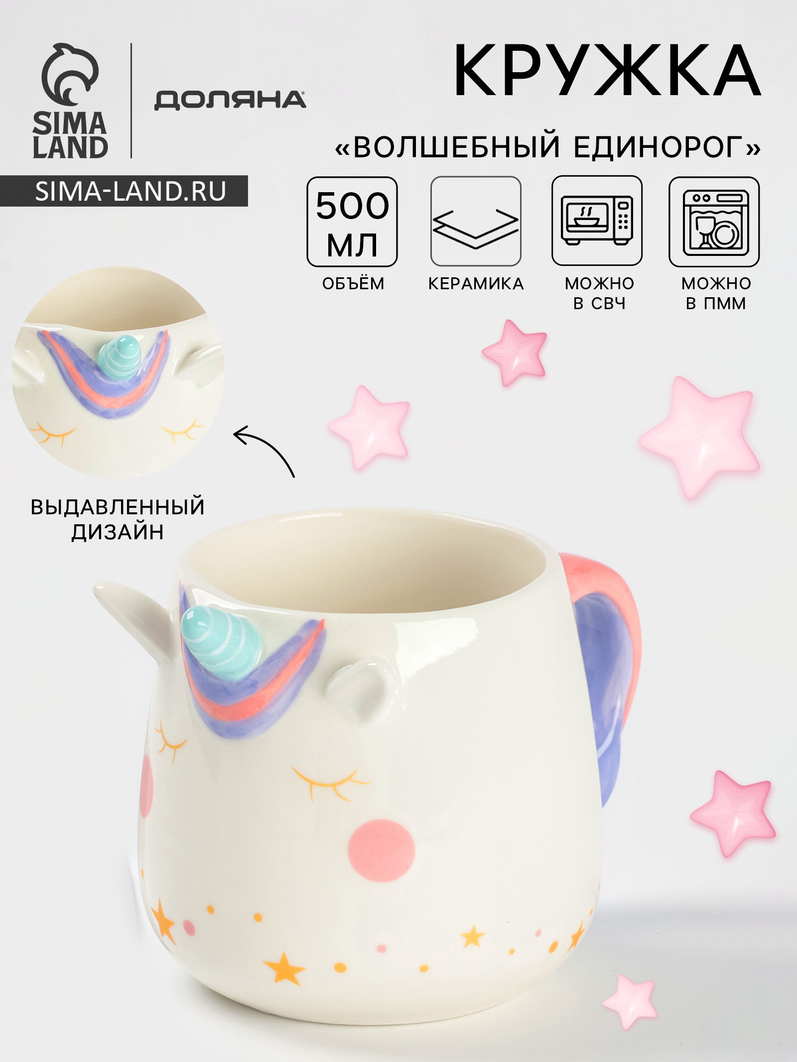 Кружка доляна «волшебный единорог», 500 мл, керамика, белая
