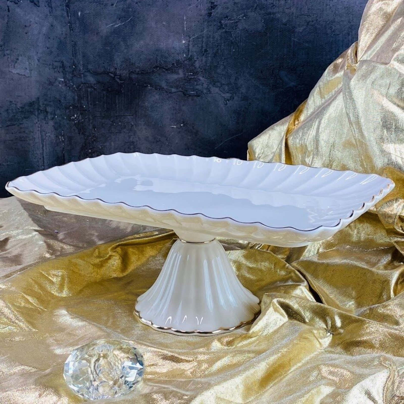 Блюдо прямоугольное Lenardi, на ножке, фарфор, длина 35.5 см