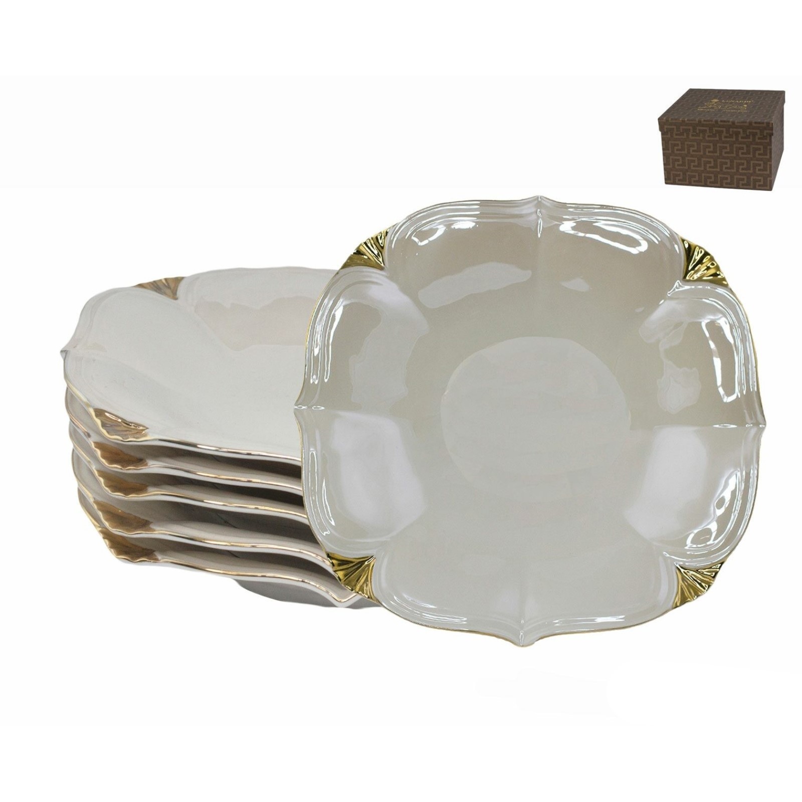 Набор глубоких тарелок Lenardi «перламутр белый», фарфор, 21 см, 6 шт
