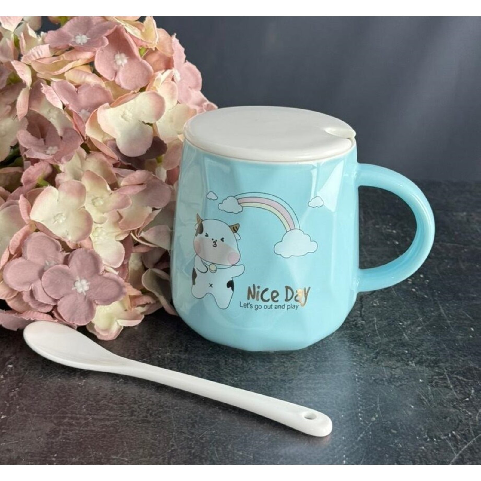 Кружка детская Lenardi, с крышкой и ложкой, фарфор, 420 мл