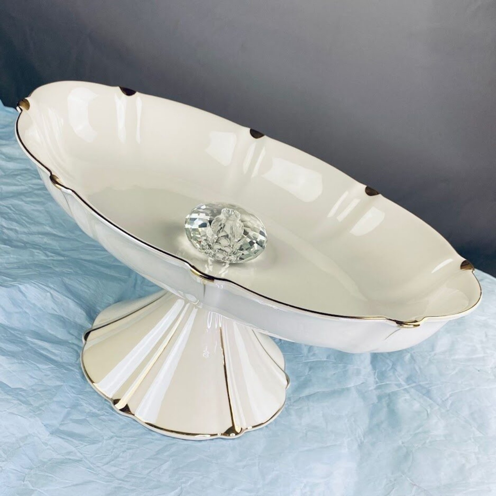 Фркутовница овальная Lenardi, на ножке, фарфор, длина 35.5 см