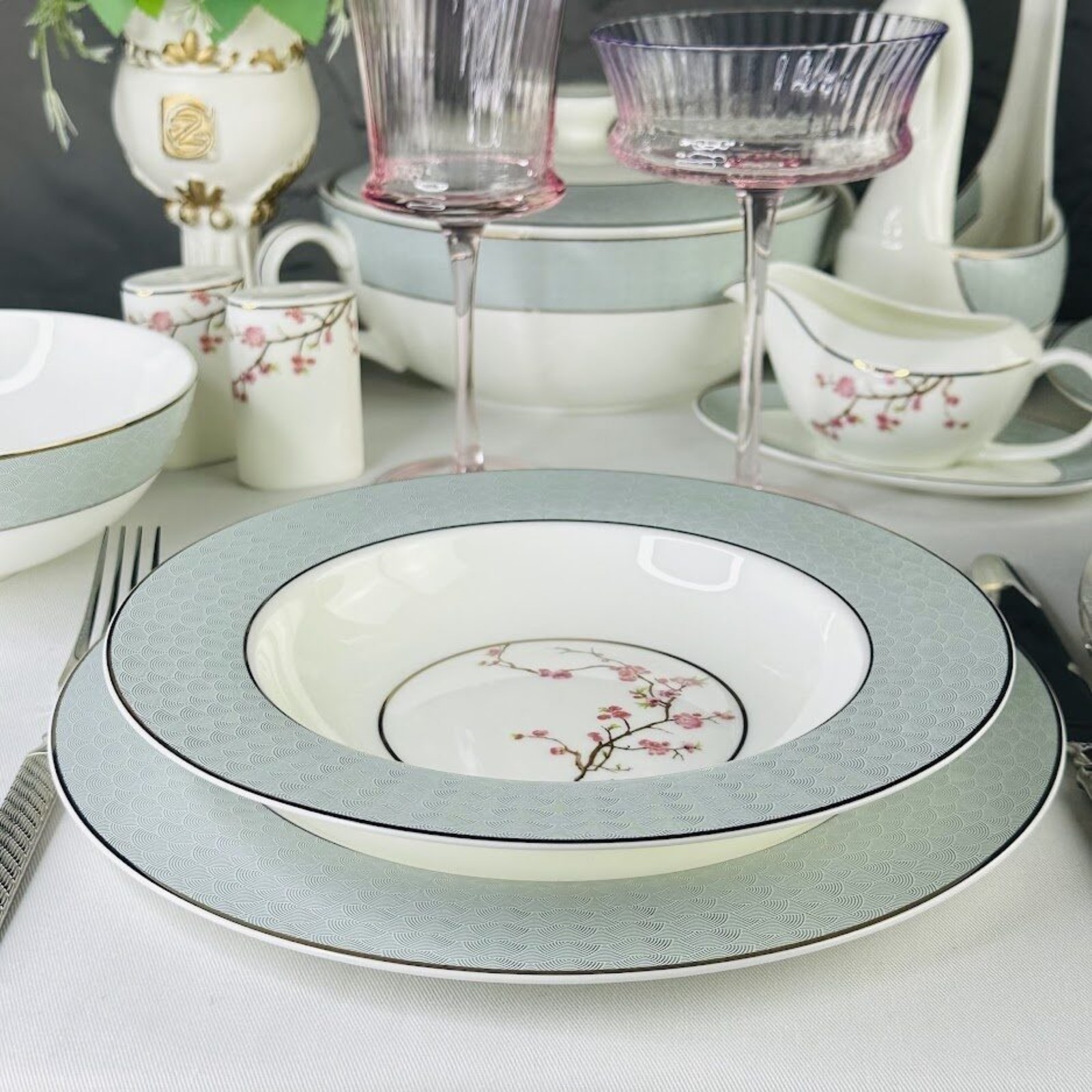 Набор глубоких тарелок Lenardi «сакура», костяной фарфор, D=23 см, 6 шт