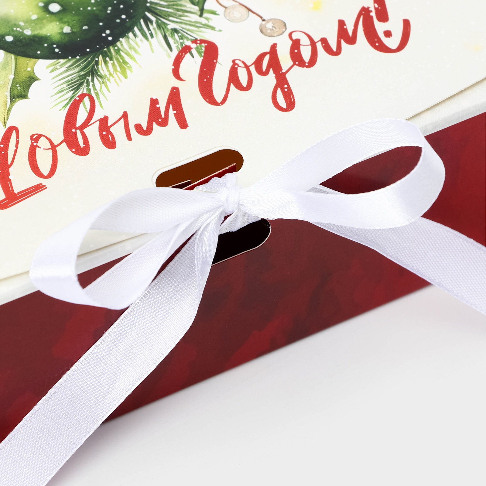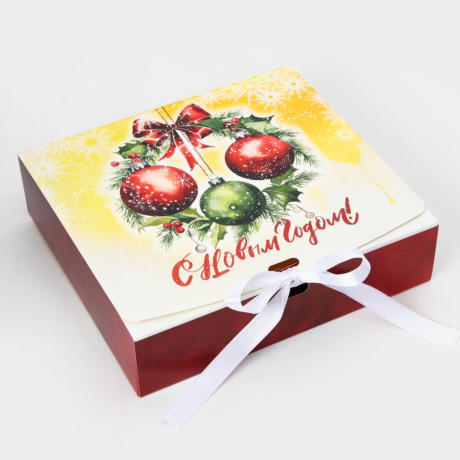 Коробка подарочная новогодняя складная, упаковка «с новым годом», 20 18 5 см. Складная подарочная коробка новогодняя с лентой, размером 20 18 5 см — это стильное и удобное решение для упаковки ваших праздничных подарков. Эта элегантная коробка с новогодним дизайном станет идеальным выбором для демонстрации ваших подарков в самые важные моменты. Изготовленная из прочного картона, коробка обеспечивает надежную защиту содержимого и легко складывается, что упрощает хранение и транспортировку. Яркий новогодний дизайн с праздничными элементами создает атмосферу волшебства и радости, а мягкая лента на крышке добавляет дополнительный элемент изысканности и завершенности. Размеры коробки 20 18 5 см идеально подходят для упаковки небольших подарков, аксессуаров или сладостей. Складная конструкция позволяет легко собрать и разобрать коробку, что делает её удобной в использовании. Подарочная коробка с лентой — это не просто упаковка, а часть праздничного настроения, которая подчеркнет внимание к деталям и добавит особое волшебство в любой подарок. Цвет:Красный|Цвет:Разноцветный|Форма:Прямоугольная|Плотность, г/м :300|Длина, см:20|Ширина, см:18|Высота, см:5|Тематика:Новогодняя|Тематика:Рождественская|Символ года:Нет|Тематика праздника:Новый год|Тематика праздника:Рождество|Материал:Картон|Вид:Складные коробки|Размер:Средний (18-24 см)|Окошко:Нет|Крышка-дно:Нет|Страна:Россия  развернуть описание ▼