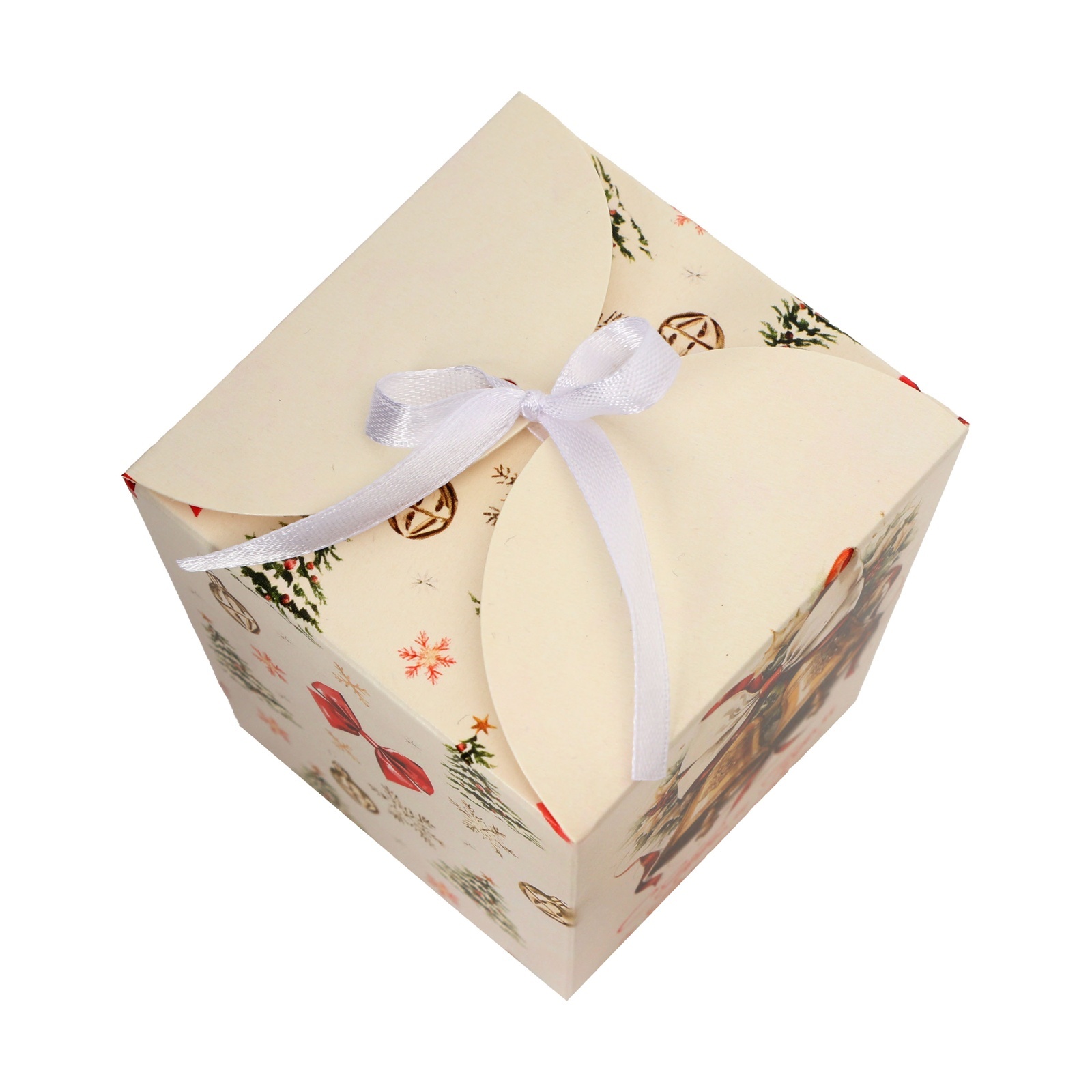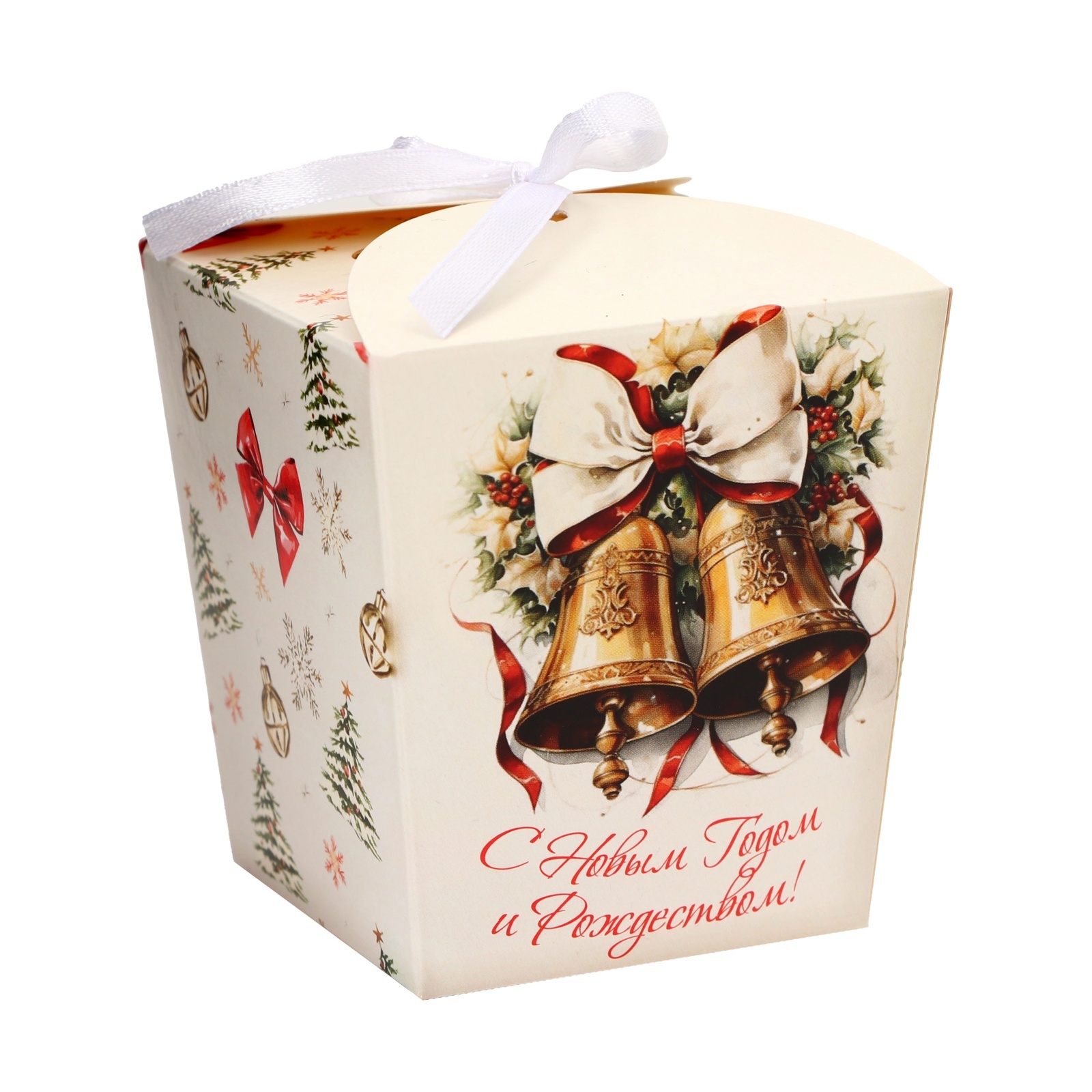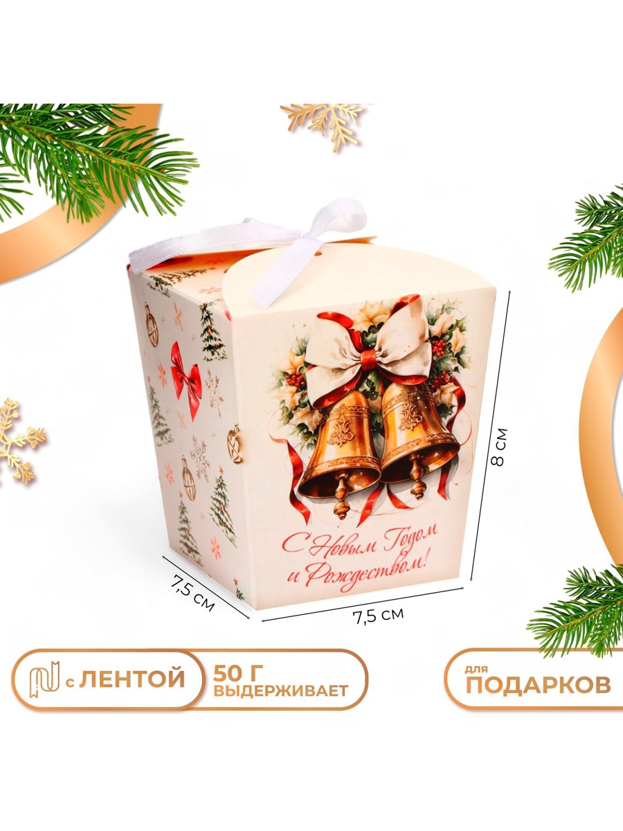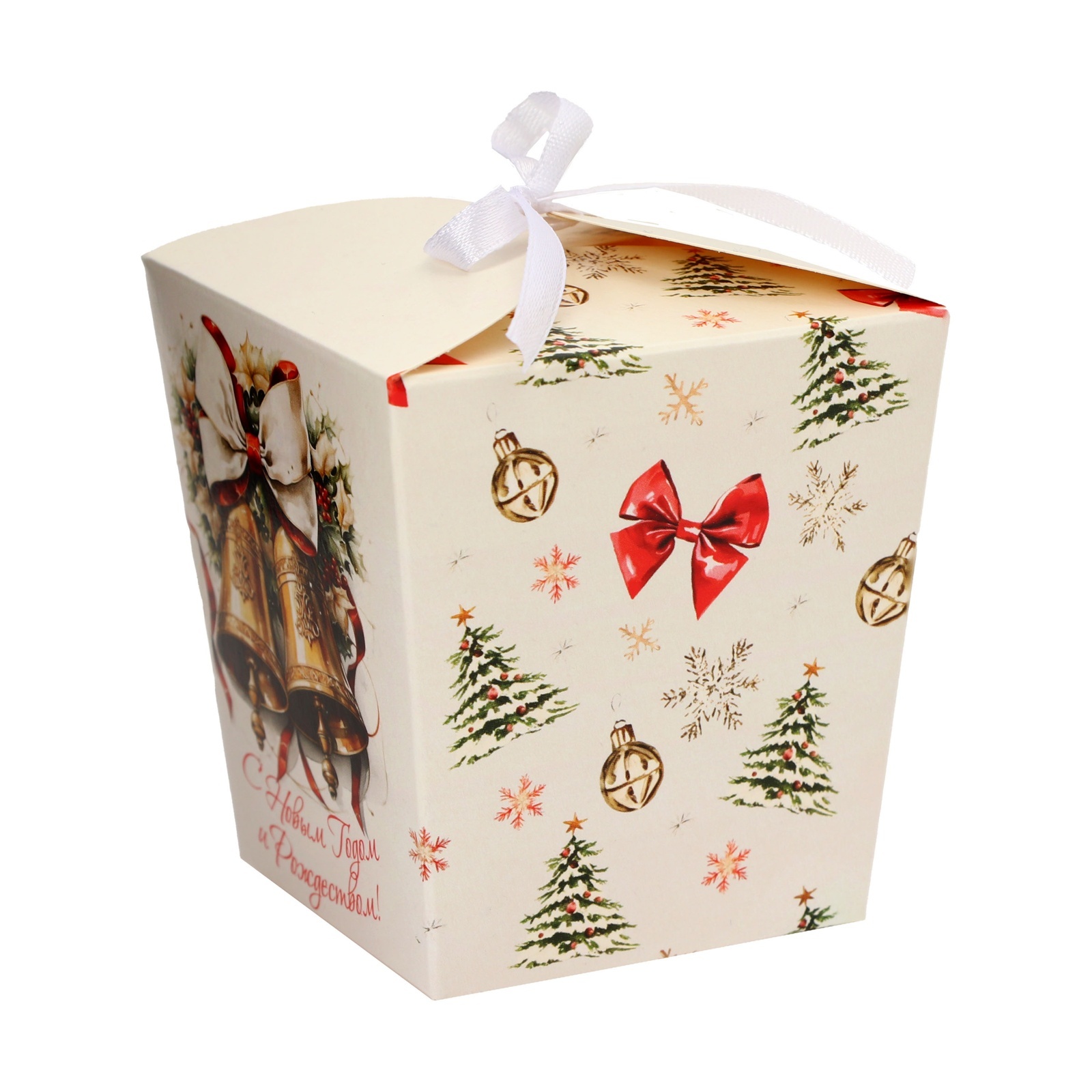 Бонбоньерка новогодняя, подарочная упаковка «с новым годом», 7.5 8 7.5 см. Бонбоньерка новогодняя Это небольшой, но очень стильный и праздничный аксессуар, предназначенный для хранения и вручения сладостей, маленьких сувениров или других приятных мелочей в канун Нового года. Она изготовлена из плотного картона, что придает ей необходимую прочность и устойчивость. Ее поверхность украшена яркими, сочными принтами с новогодней тематикой, что делает их еще более привлекательными и праздничными. Цвет:Разноцветный|Цвет:Бежевый|Форма:Прямоугольная|Форма:Фигурная|Плотность, г/м :350|Длина, см:7.5|Ширина, см:7.5|Высота, см:8|Тематика:Рождественская|Тематика:Новогодняя|Символ года:Нет|Тематика праздника:Рождество|Тематика праздника:Новый год|Материал:Картон|Вид:Фигурные|Вид:Складные коробки|Размер:Мини (до 10 см)|Окошко:Нет|Крышка-дно:Нет|Страна:Россия  развернуть описание ▼