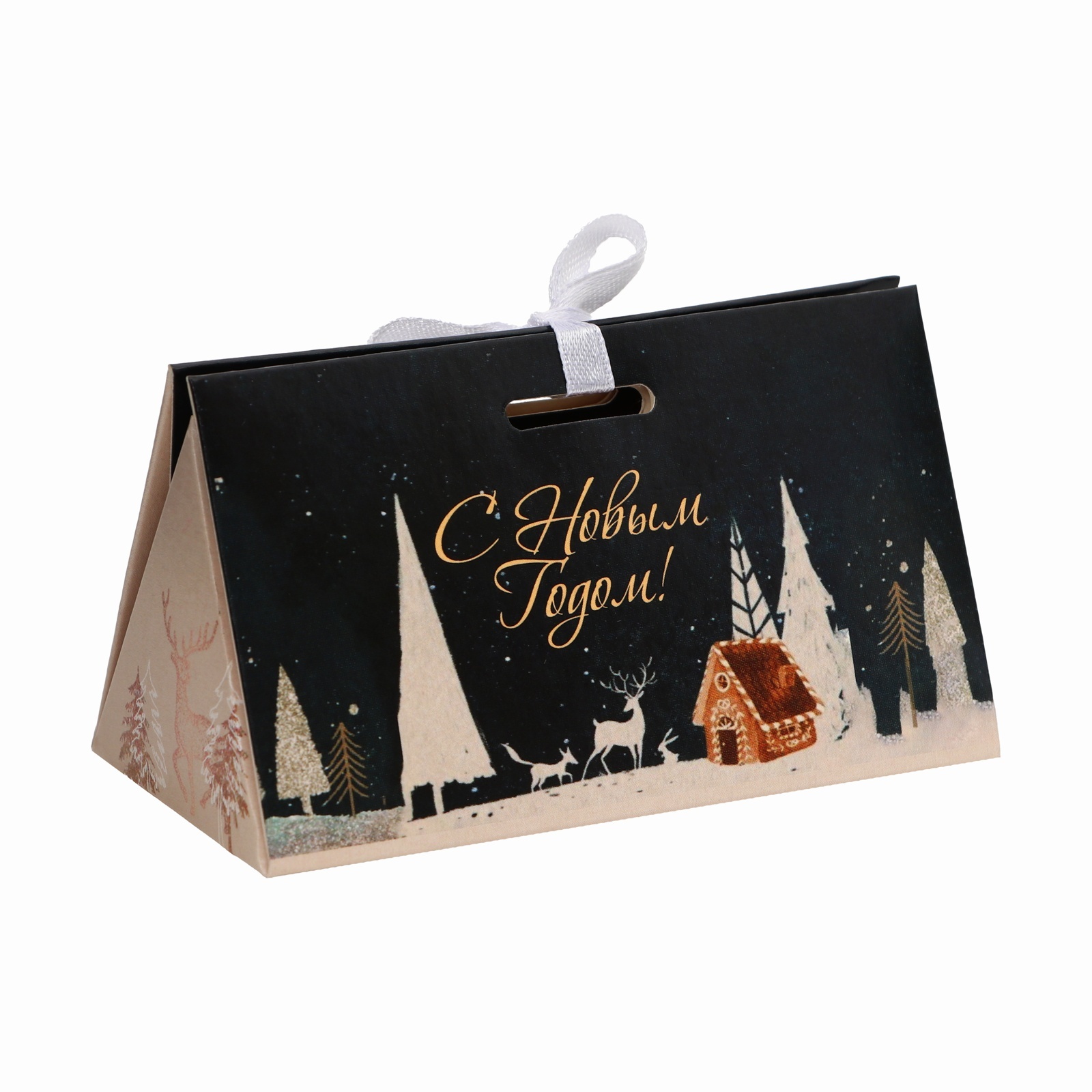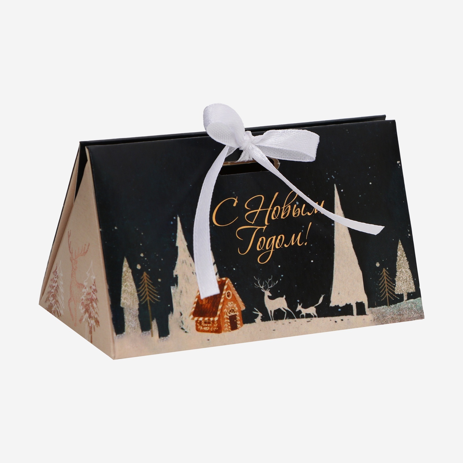 Бонбоньерка новогодняя, подарочная упаковка «с новым годом», 10 5.5 5 см. Бонбоньерка новогодняя Это небольшой, но очень стильный и праздничный аксессуар, предназначенный для хранения и вручения сладостей, маленьких сувениров или других приятных мелочей в канун Нового года. Она изготовлена из плотного картона, что придает ей необходимую прочность и устойчивость. Ее поверхность украшена яркими, сочными принтами с новогодней тематикой, что делает их еще более привлекательными и праздничными. Цвет:Чёрный|Форма:Прямоугольная|Форма:Фигурная|Плотность, г/м :350|Длина, см:10|Ширина, см:5|Высота, см:5.5|Тематика:Рождественская|Тематика:Новогодняя|Символ года:Нет|Тематика праздника:Новый год|Тематика праздника:Рождество|Материал:Картон|Вид:Складные коробки|Вид:Фигурные|Размер:Мини (до 10 см)|Окошко:Нет|Крышка-дно:Нет|Страна:Россия  развернуть описание ▼