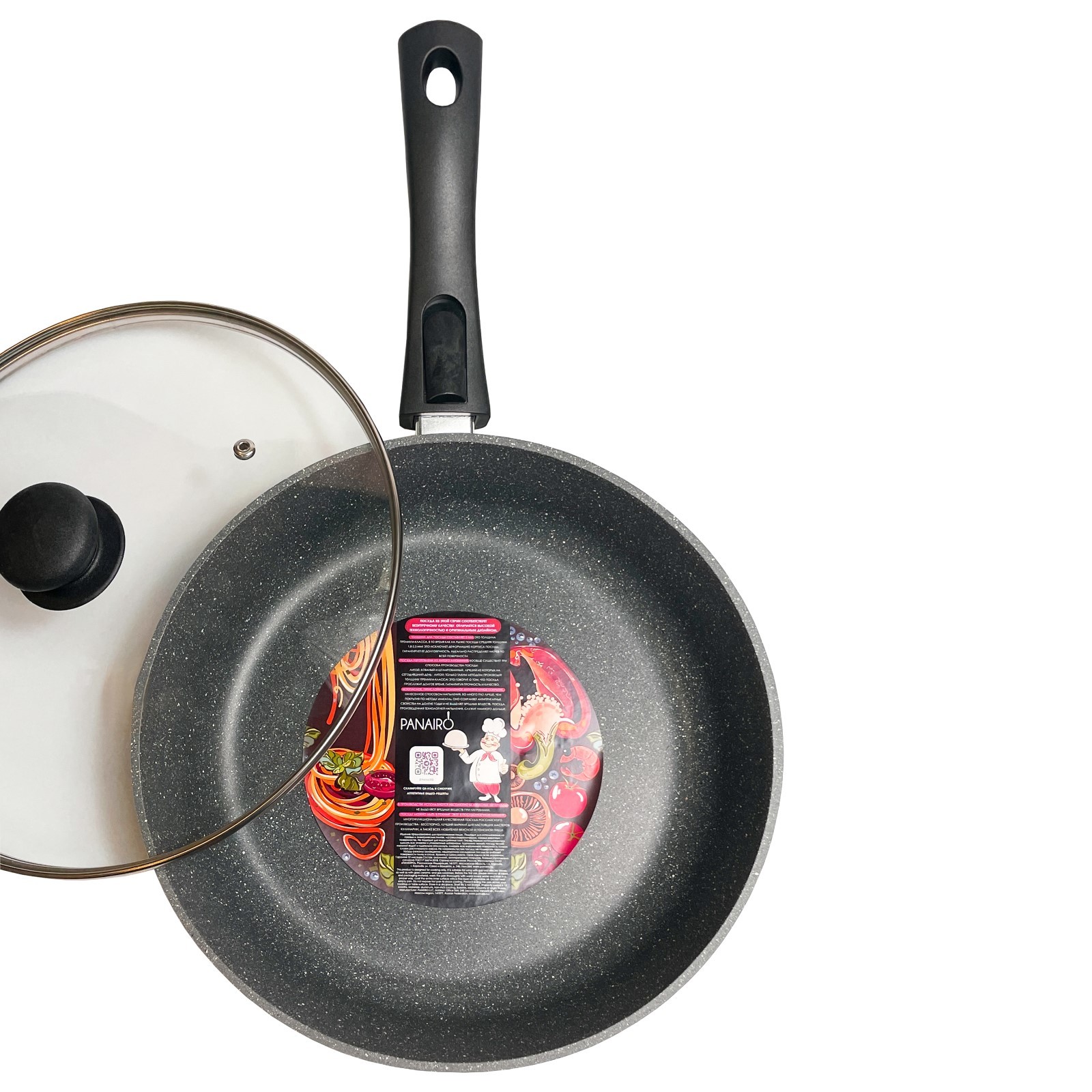 Сковорода глубокая Panairo Sogretta, съёмная ручка, с крышкой, литой алюминий, D=26 см