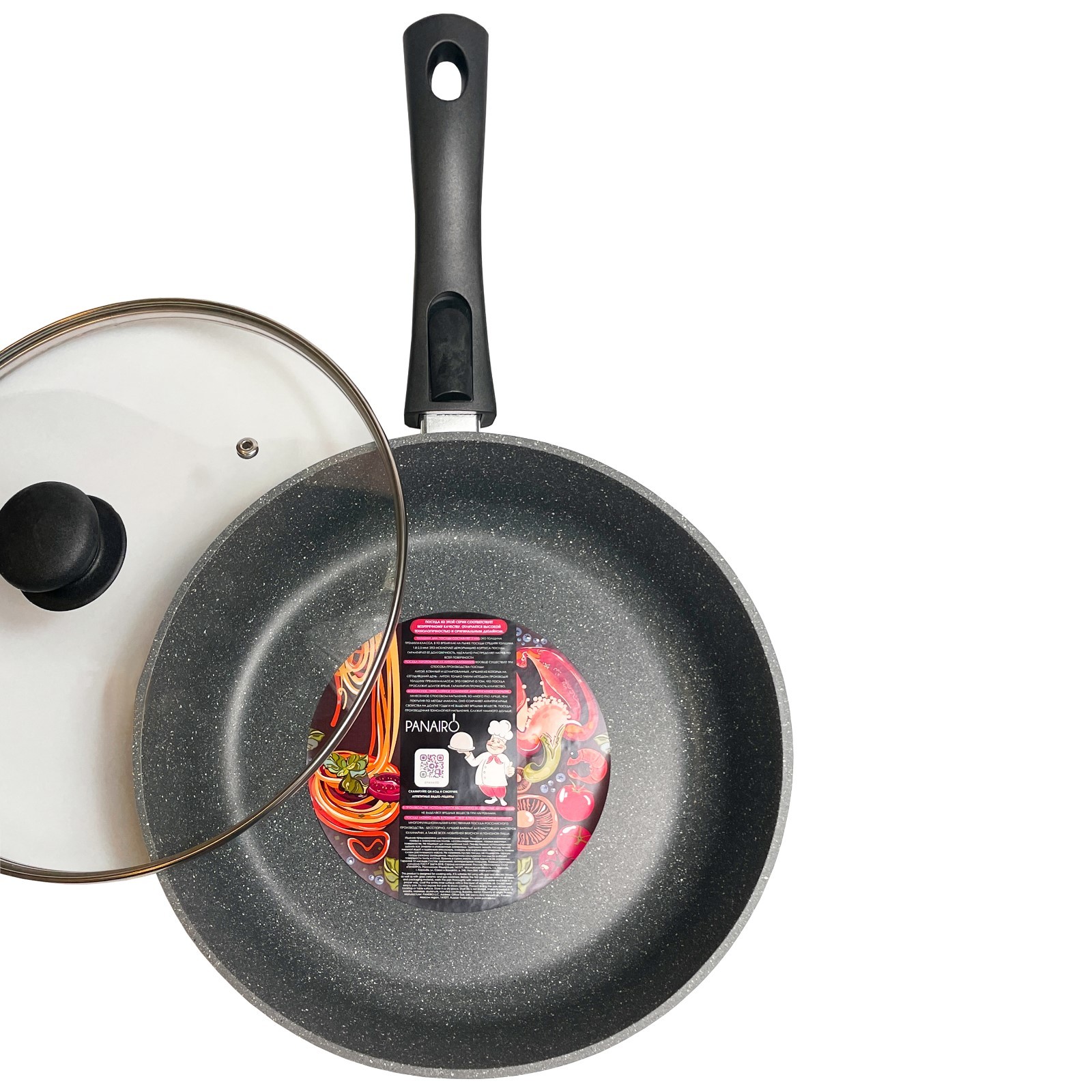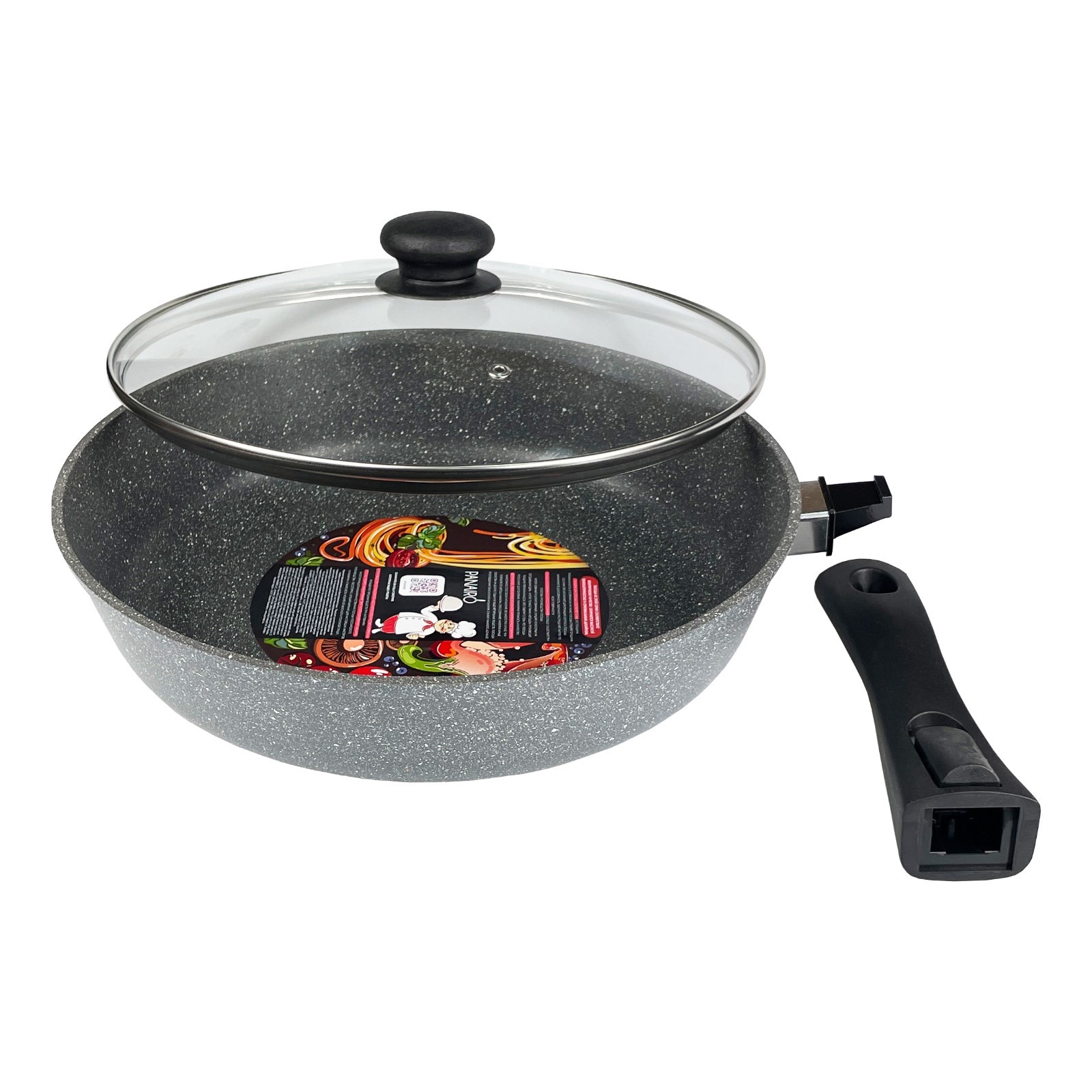 Сковорода глубокая Panairo Sogretta, съёмная ручка, с крышкой, литой алюминий, D=28 см