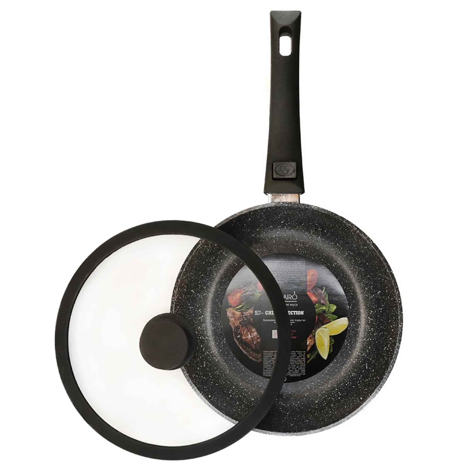 Сковорода глубокая Panairo Chief Induction, индукция, съёмная ручка Soft-touch, с крышкой, D=24 см