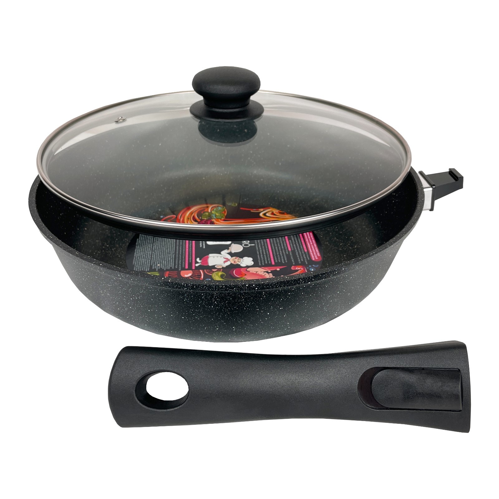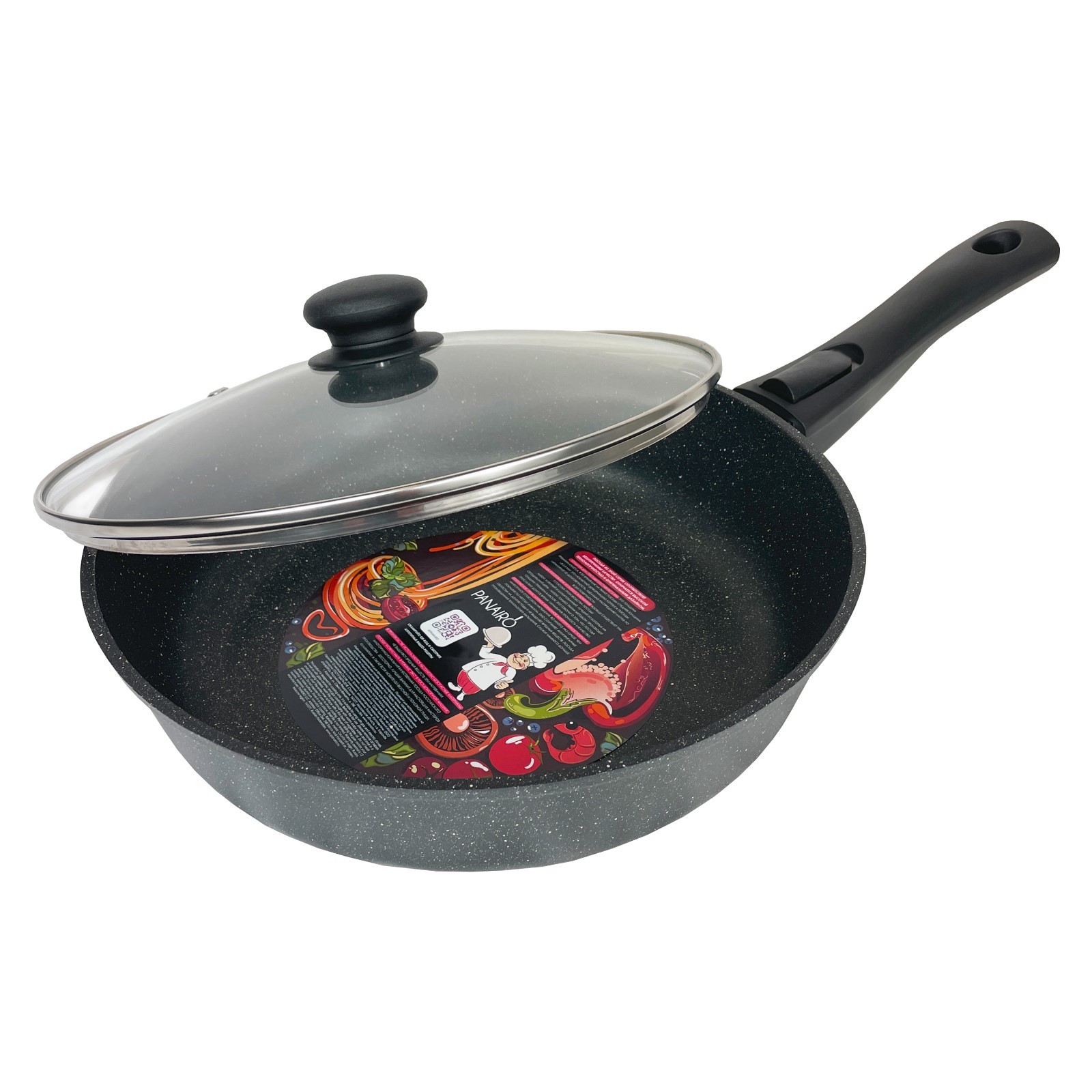 Сковорода глубокая Panairo Chief, съёмная ручка, с крышкой, литой алюминий, D=22 см