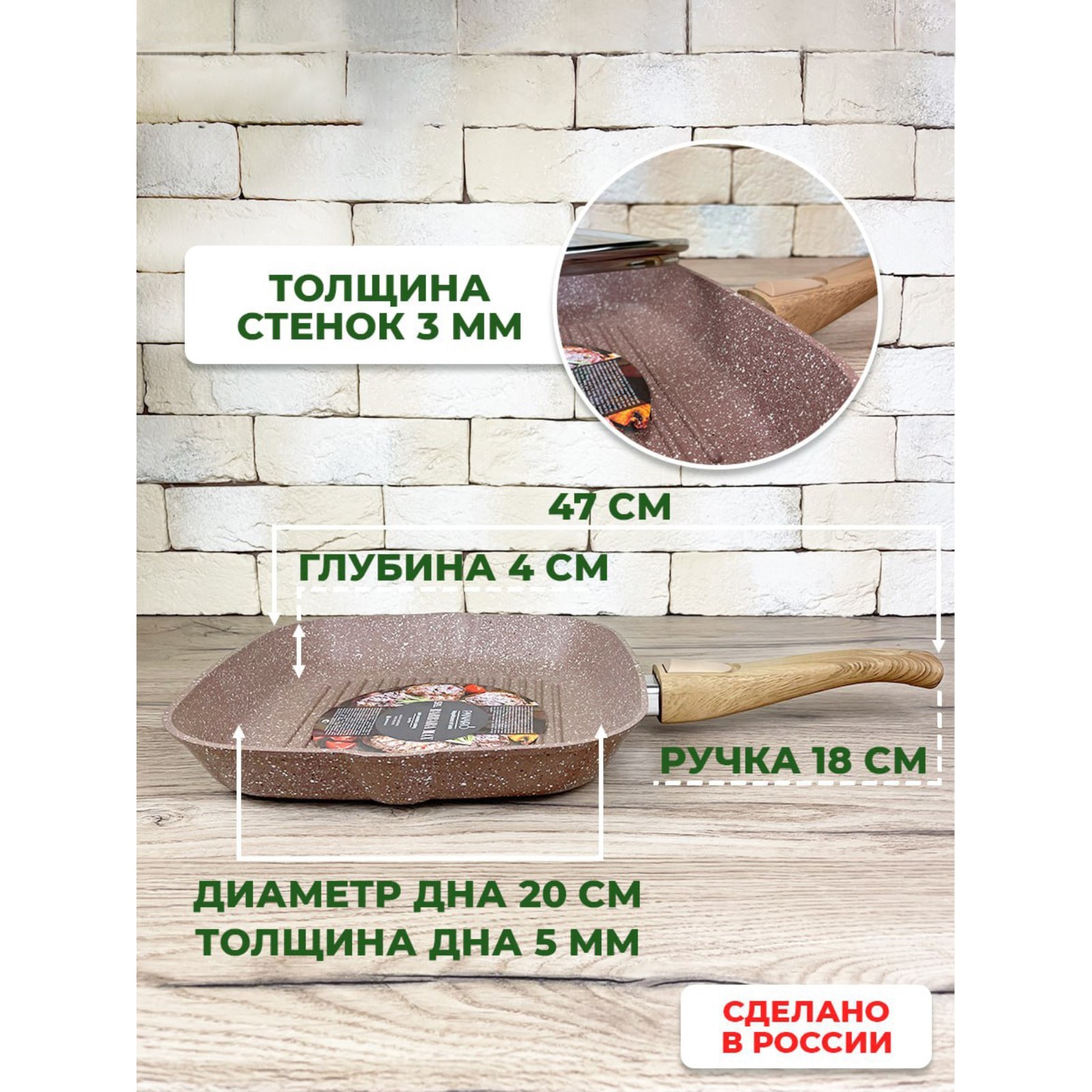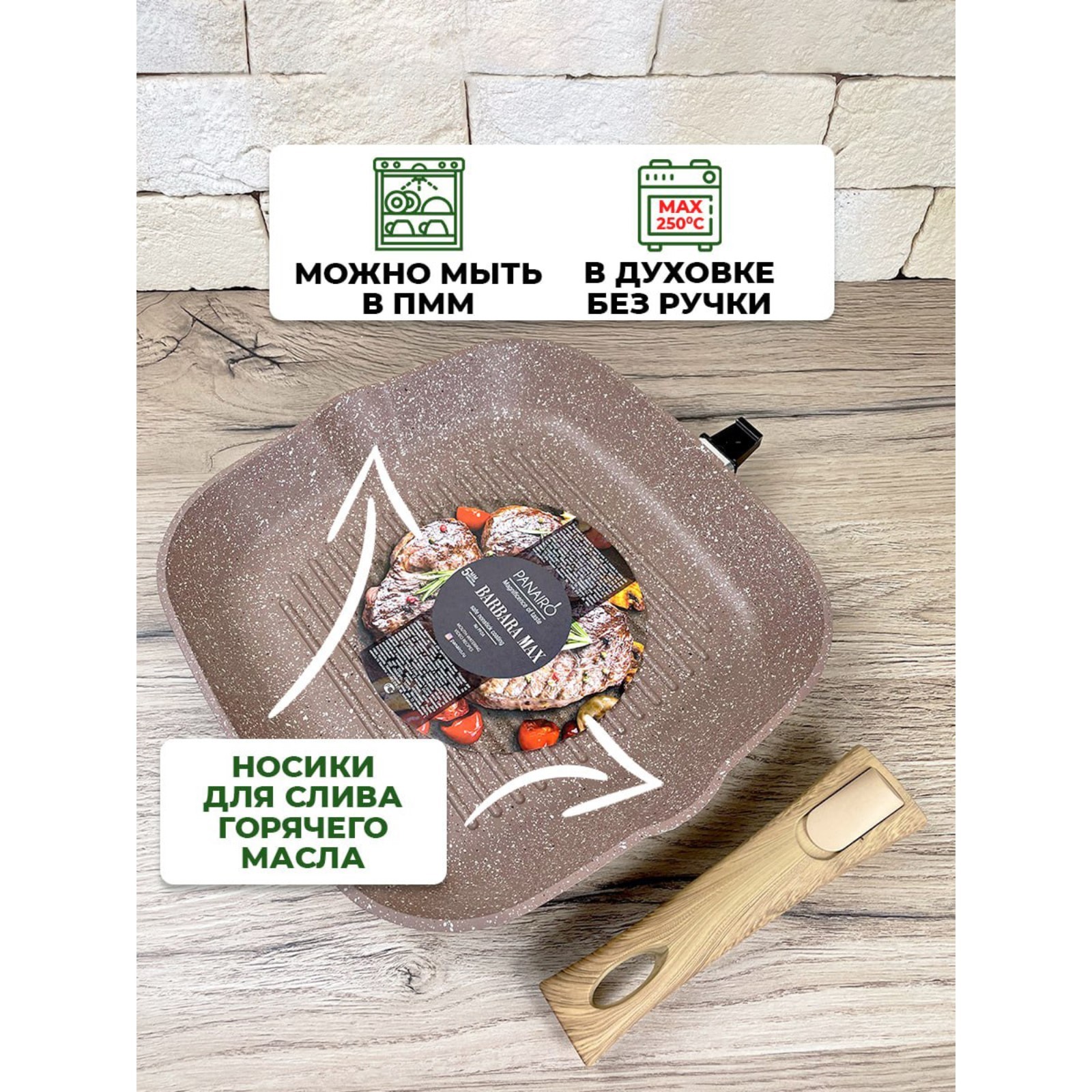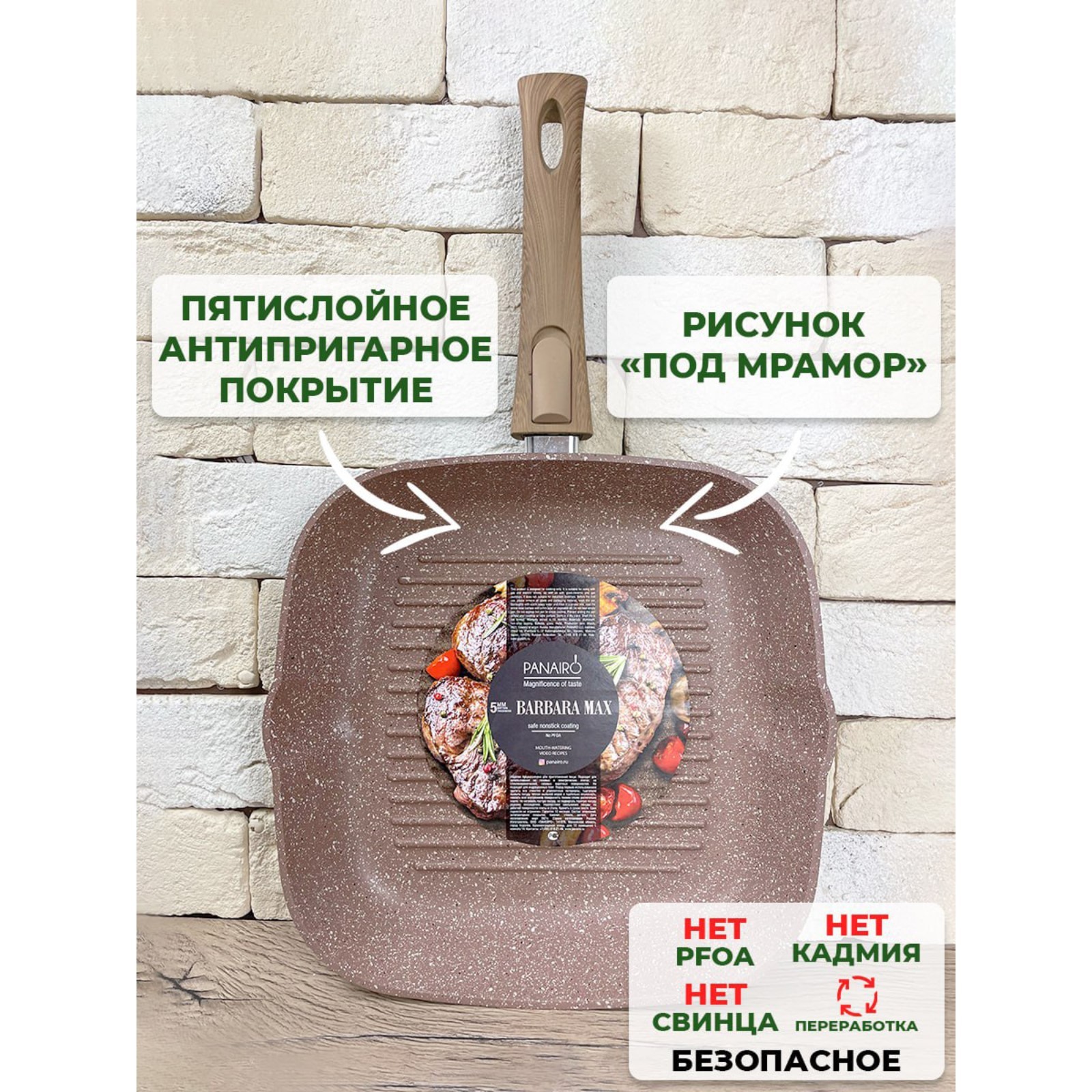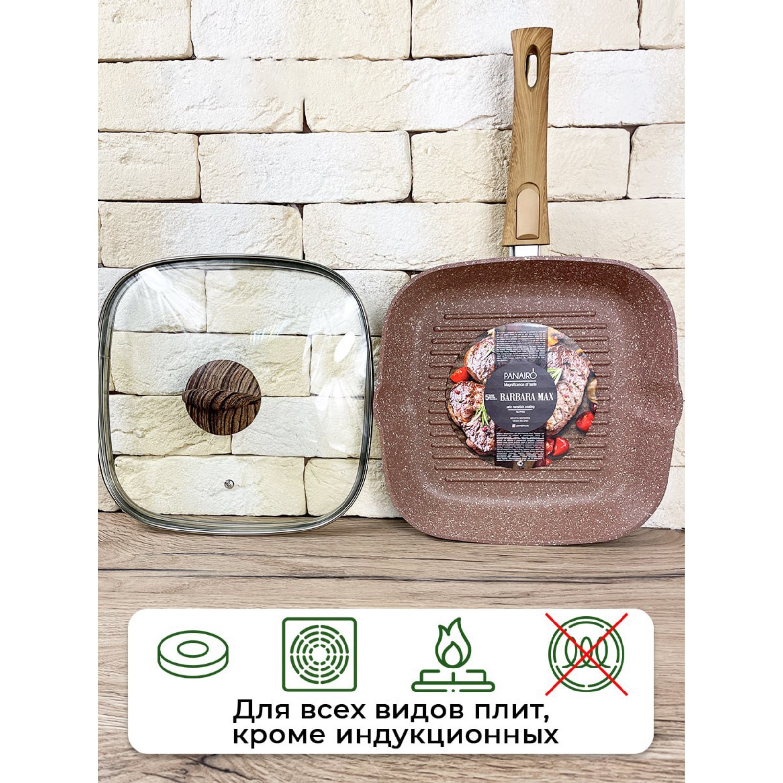 Сковорода-гриль Panairo Barbara Max, съёмная ручка Soft-touch, с крышкой, размер 27х27 см