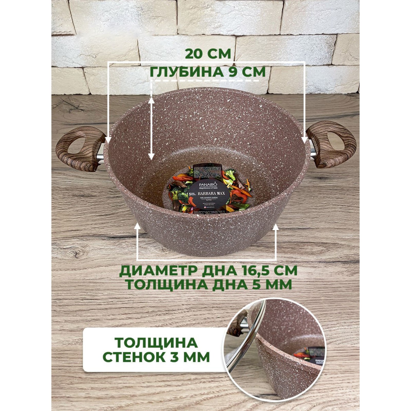 Кастрюля Panairo Barbara, с крышкой, ручка Soft-touch, 2 л