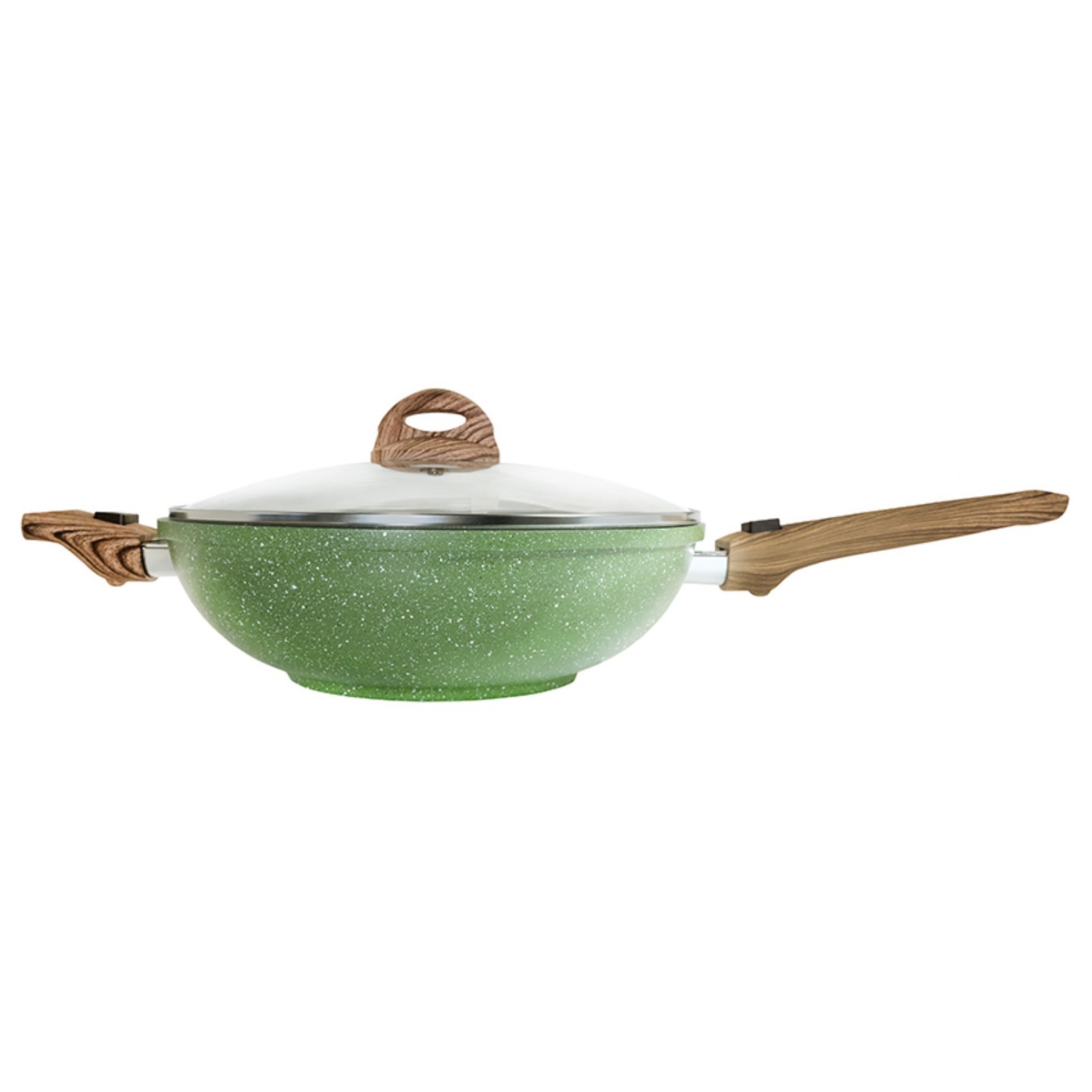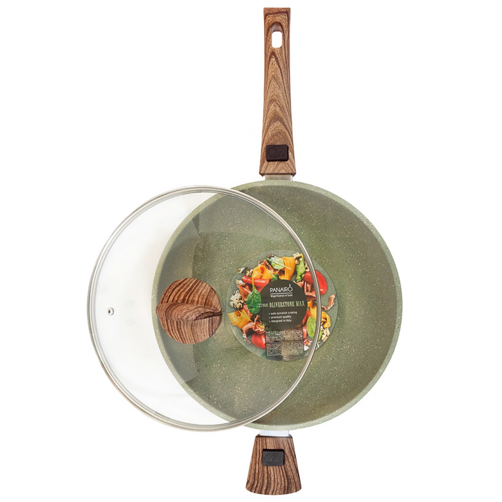 Сковорода вок Panairo Oliverstone Max, съёмные ручки Soft-touch, с крышкой, D=28 см