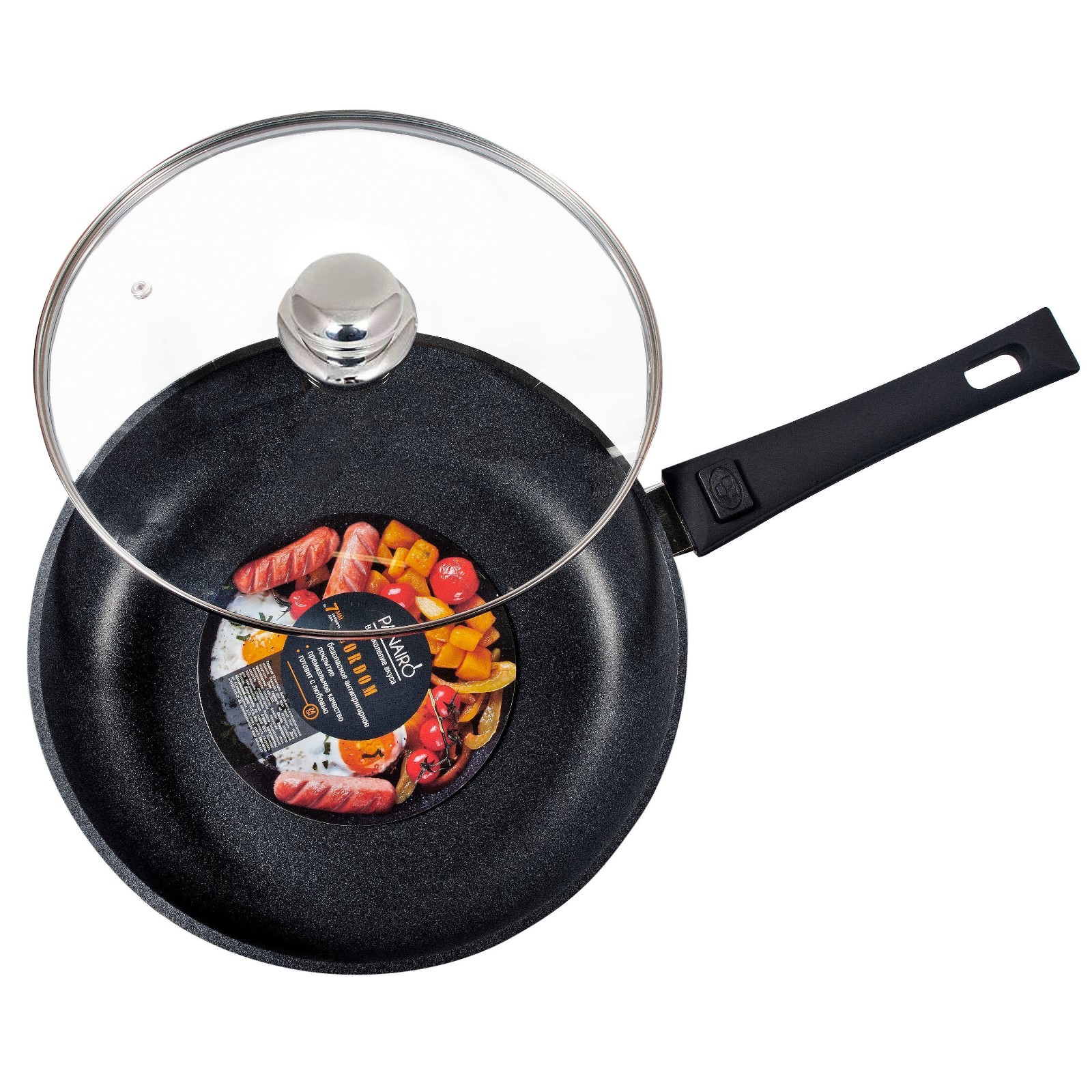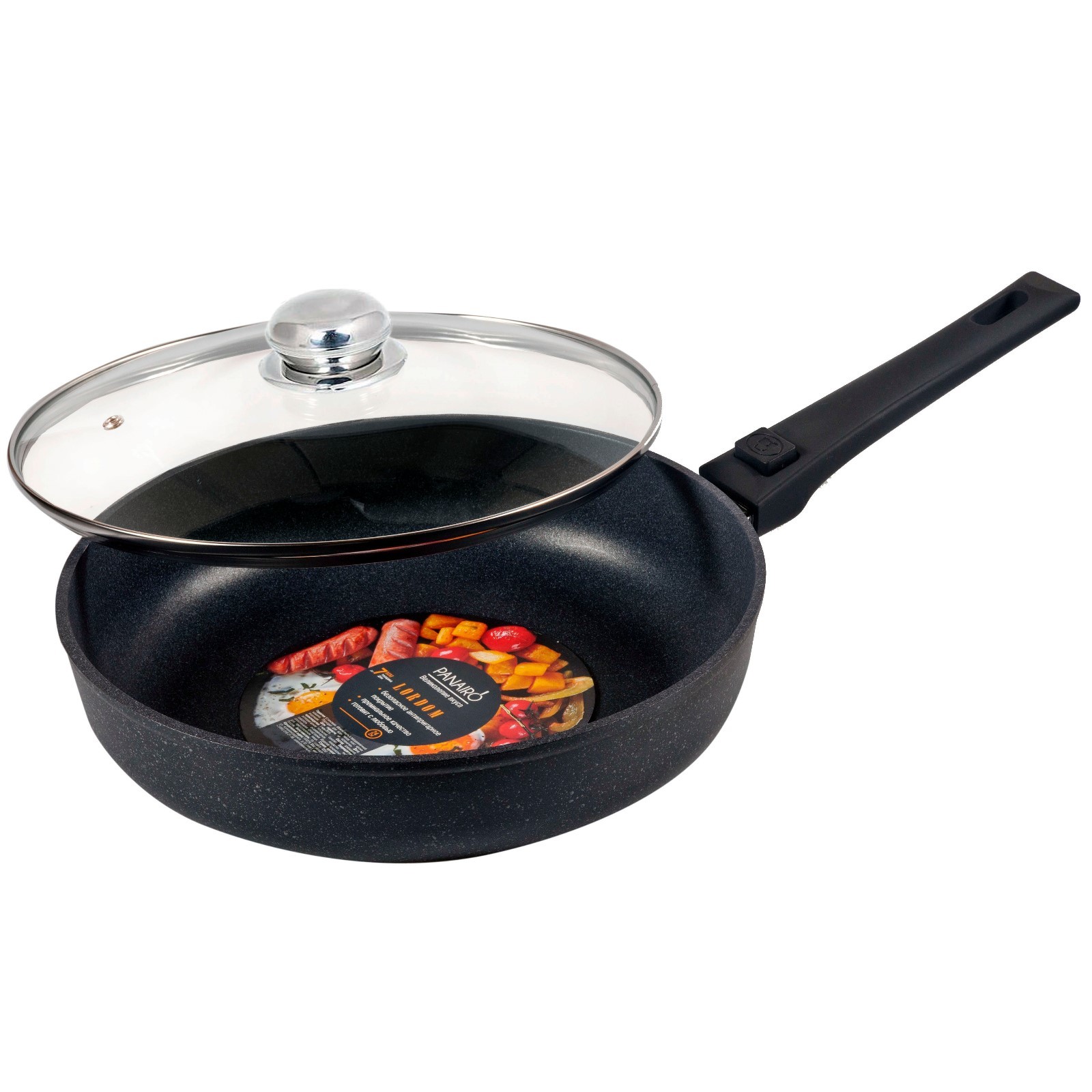 Сковорода глубокая Panairo Lordom, съёмная ручка Soft-touch, с крышкой, D=22 см