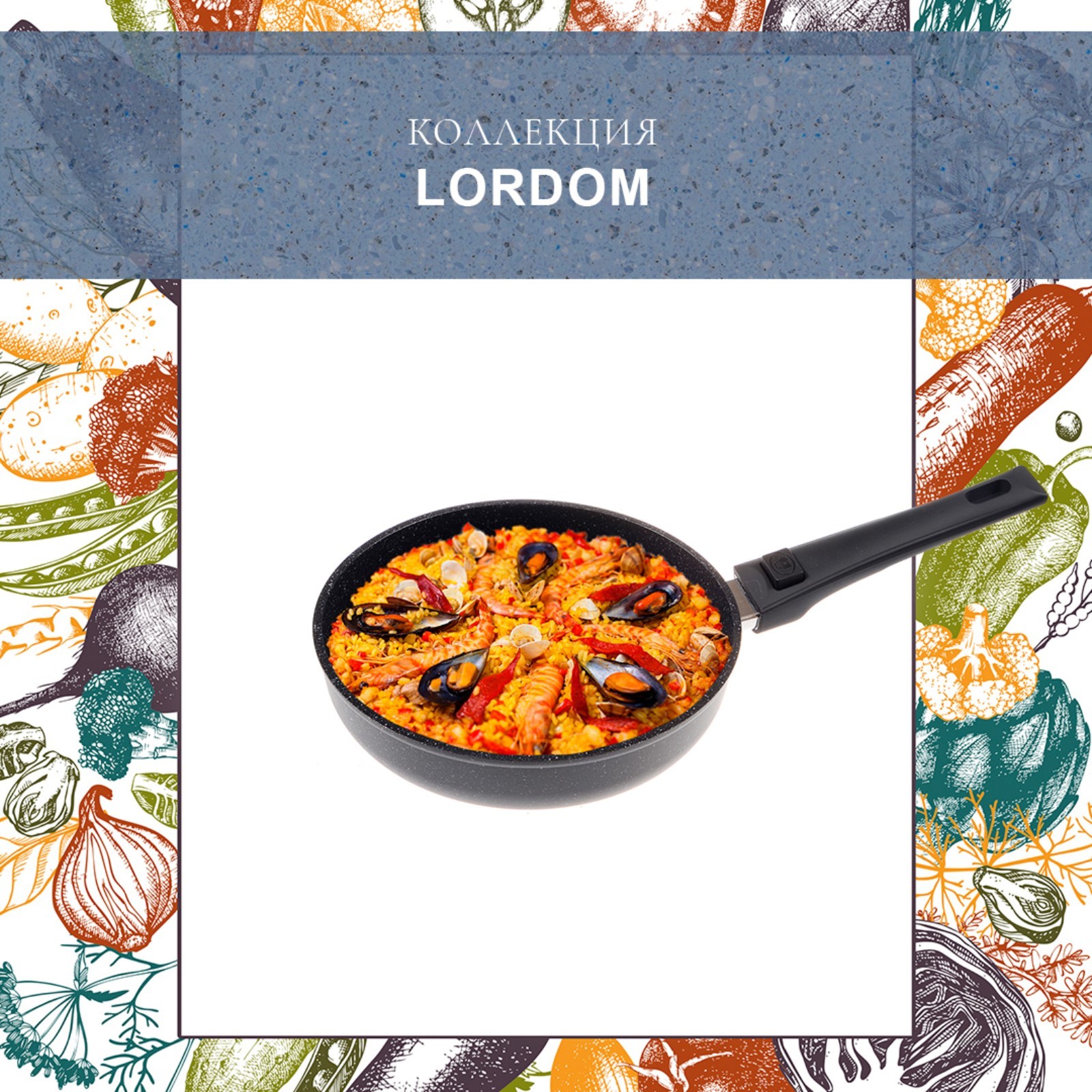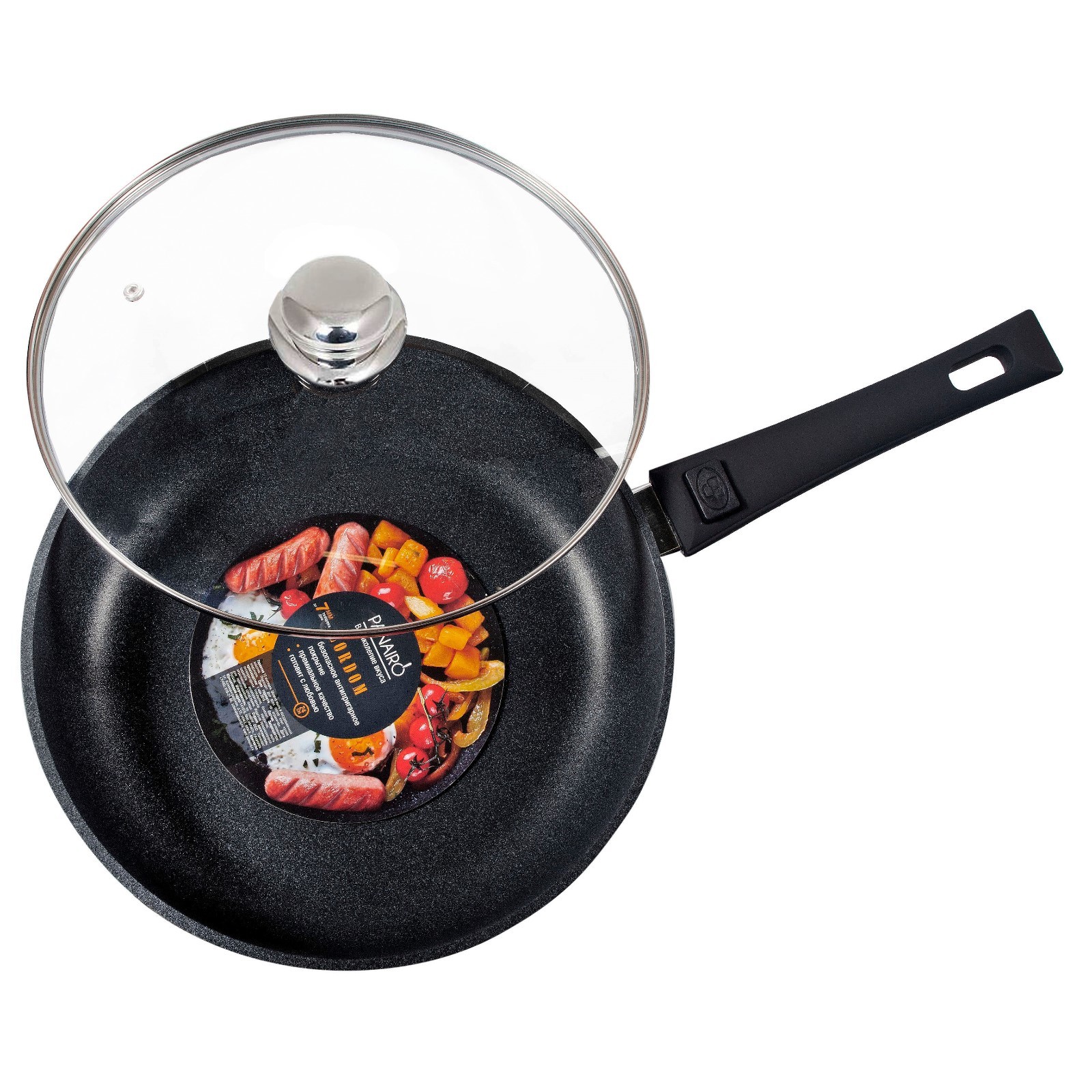 Сковорода глубокая Panairo Lordom, съёмная ручка Soft-touch, с крышкой, D=28 см
