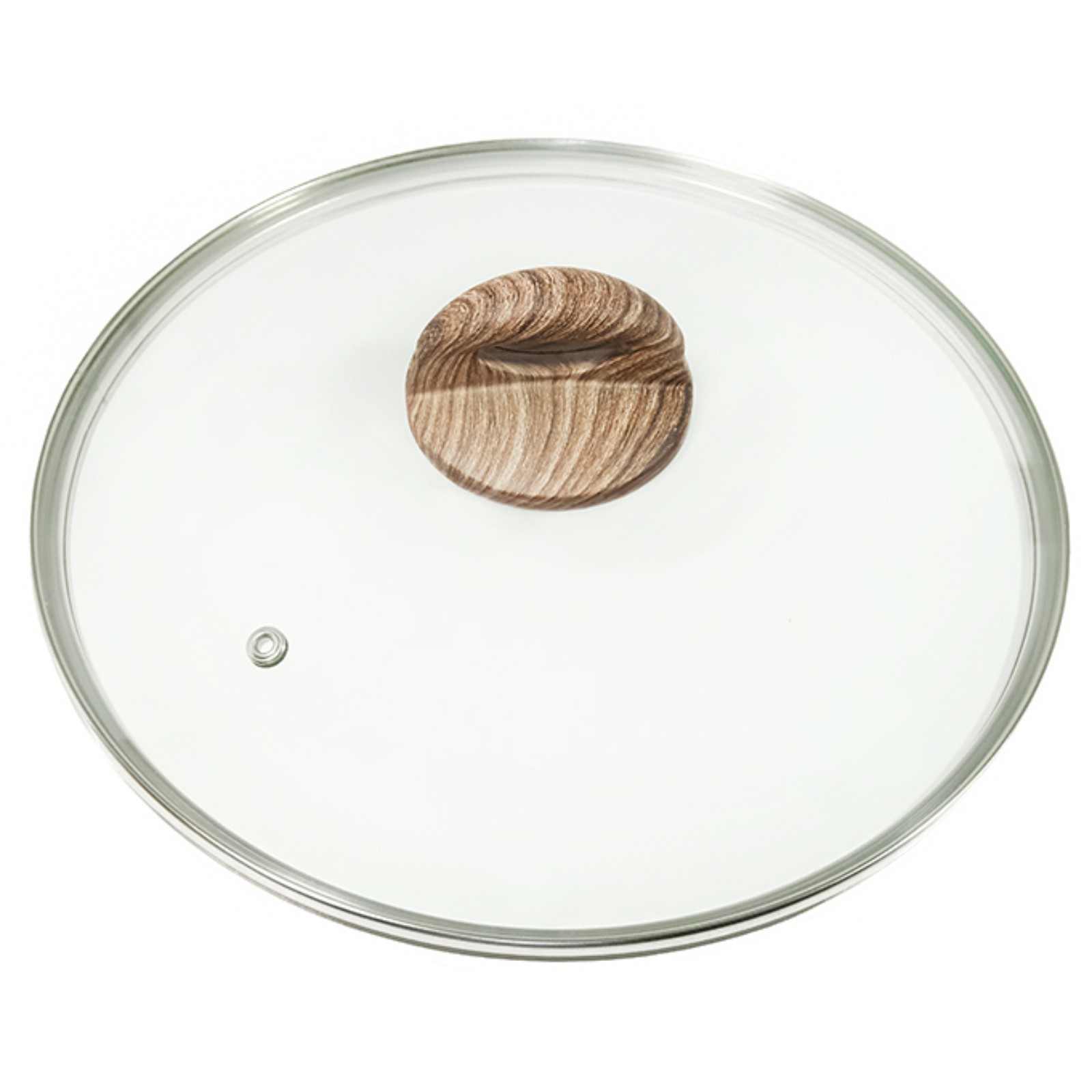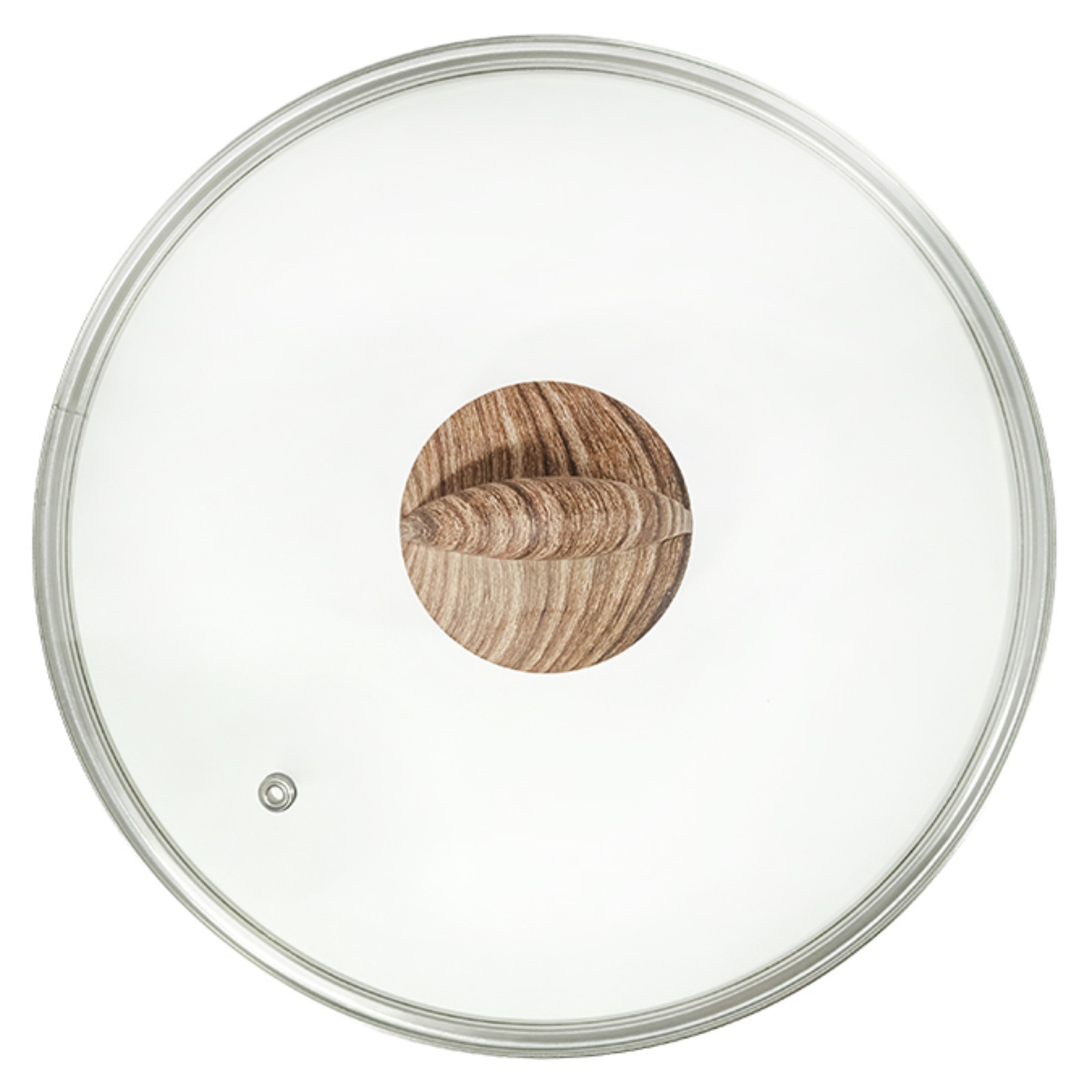 Крышка стеклянная panairo wood, ручка soft-touch, с крышкой, d=24 см. Цвет: Прозрачный Форма: Круглая Диаметр, см: 24 Материал ручки: Бакелит Крышка: Да Материал: Стекло Можно мыть в посудомоечной машине: Да Материал ободка: Сталь Серия: Wood Серия: Panairo Wood Форма: Круг, шар, цилиндр  развернуть описание ▼