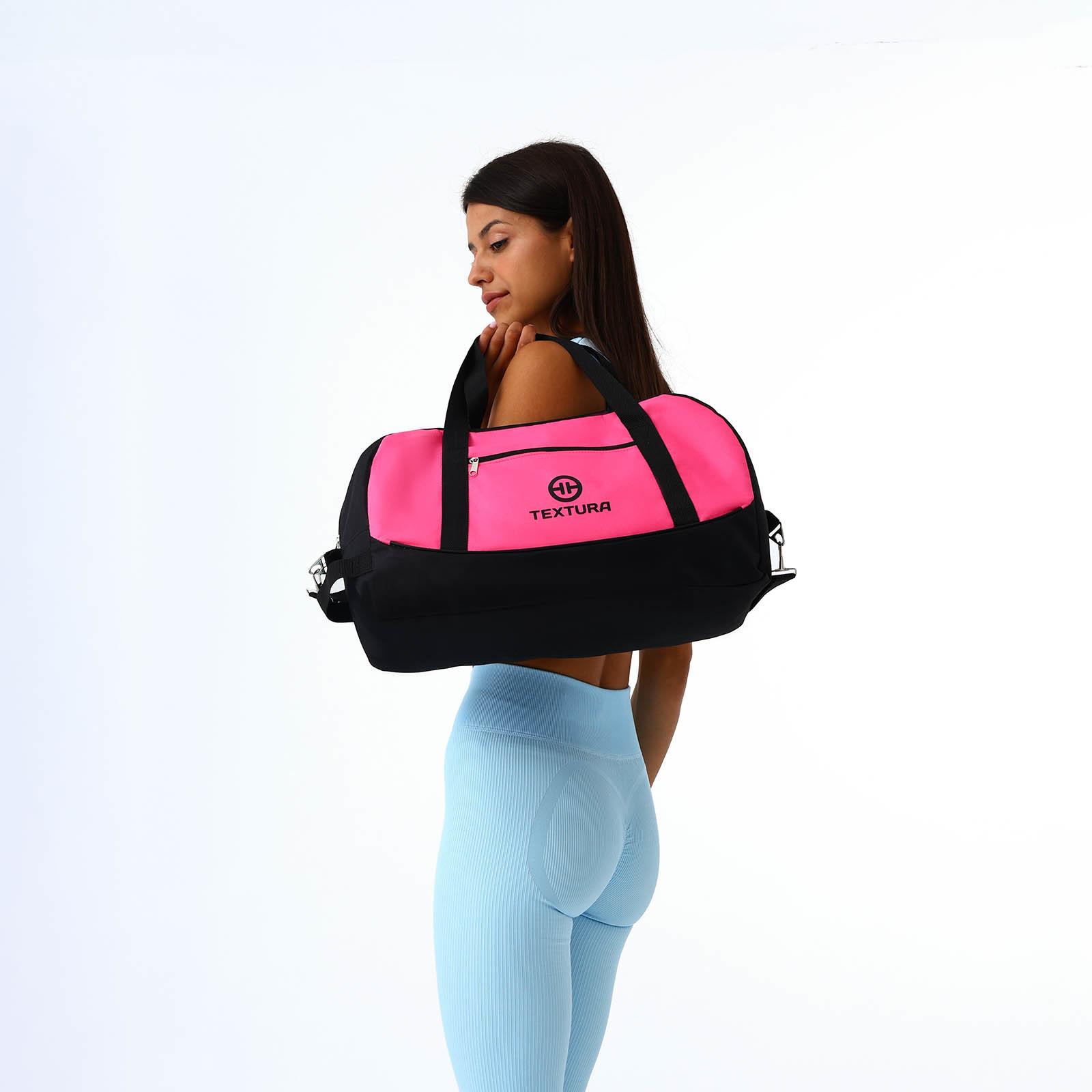 Сумка спортивная женская, Textura, средний размер, цвет чёрный/розовый