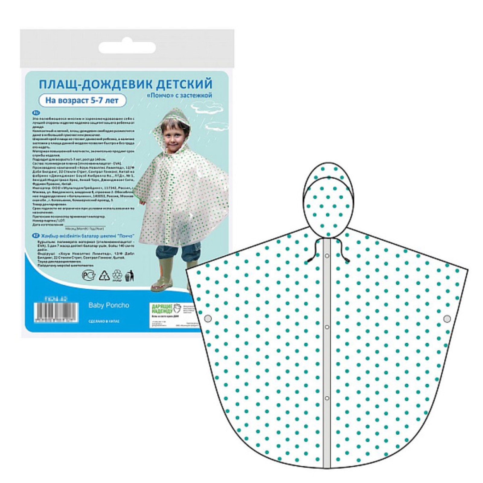 Плащ-дождевик детский мультидом «пончо», с застёжкой, возраст 5-7 лет