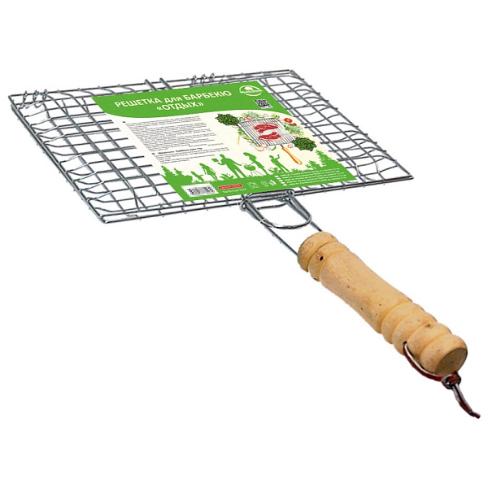 Решетка для барбекю мультидом «отдых», размер 22х23х2 см. Решётка выполнена из стальной хромированной проволоки, ручка из дерева. Используется для приготовления блюд из мяса, кур, рыбы или овощей на углях. После применения рекомендуется вымыть с использованием жидких моющих средств. Размер, см: 22 х 23 Материал ручки: Дерево Материал: Дерево Материал: Сталь хромированная Материал рабочей части: Хромированная сталь Назначение: Универсальная Антипригарное покрытие: Нет  развернуть описание ▼