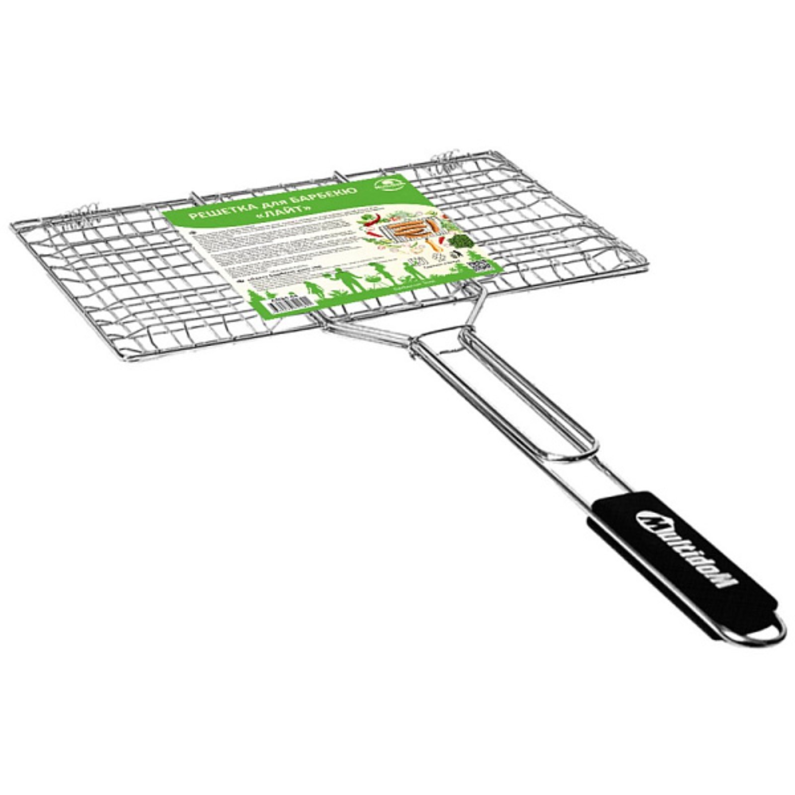 Решетка для барбекю мультидом «лайт», размер 34х22х1.5см. Решётка выполнена из стальной хромированной проволоки, ручка из дерева. Используется для приготовления мяса, рыбы или овощей на углях. После применения рекомендуется вымыть с использованием жидких моющих средств. Размер, см: 34 х 22 Материал ручки: Дерево Материал: Сталь хромированная Материал: Дерево Материал рабочей части: Хромированная сталь Назначение: Универсальная Антипригарное покрытие: Нет  развернуть описание ▼