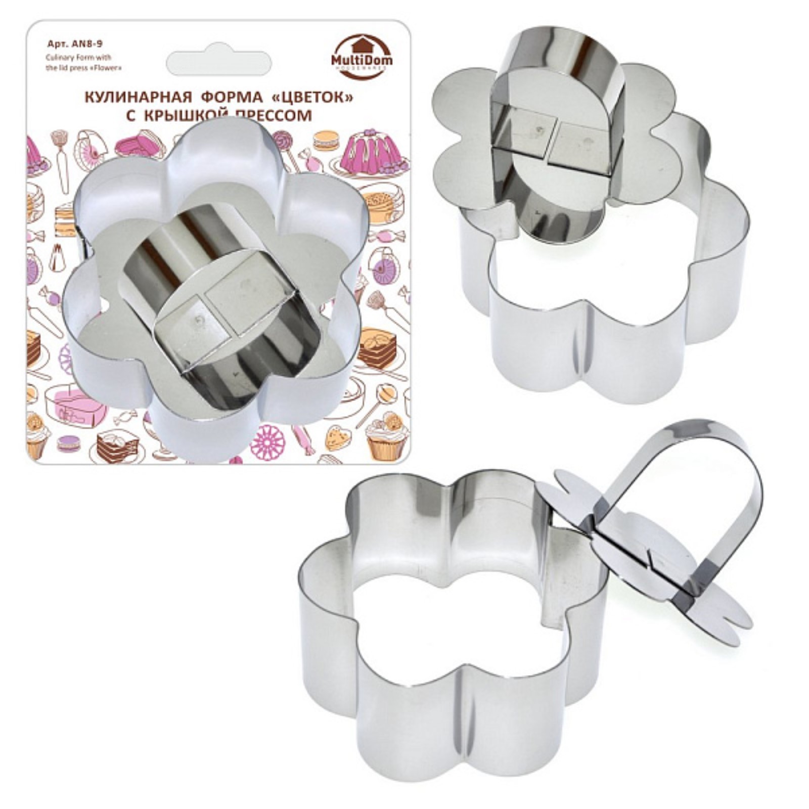 Форма кулинарная мультидом «цветок», с крышкой-прессом, нержавеющая сталь, d=8 см, размер 8х8х4 см, цвет микс.